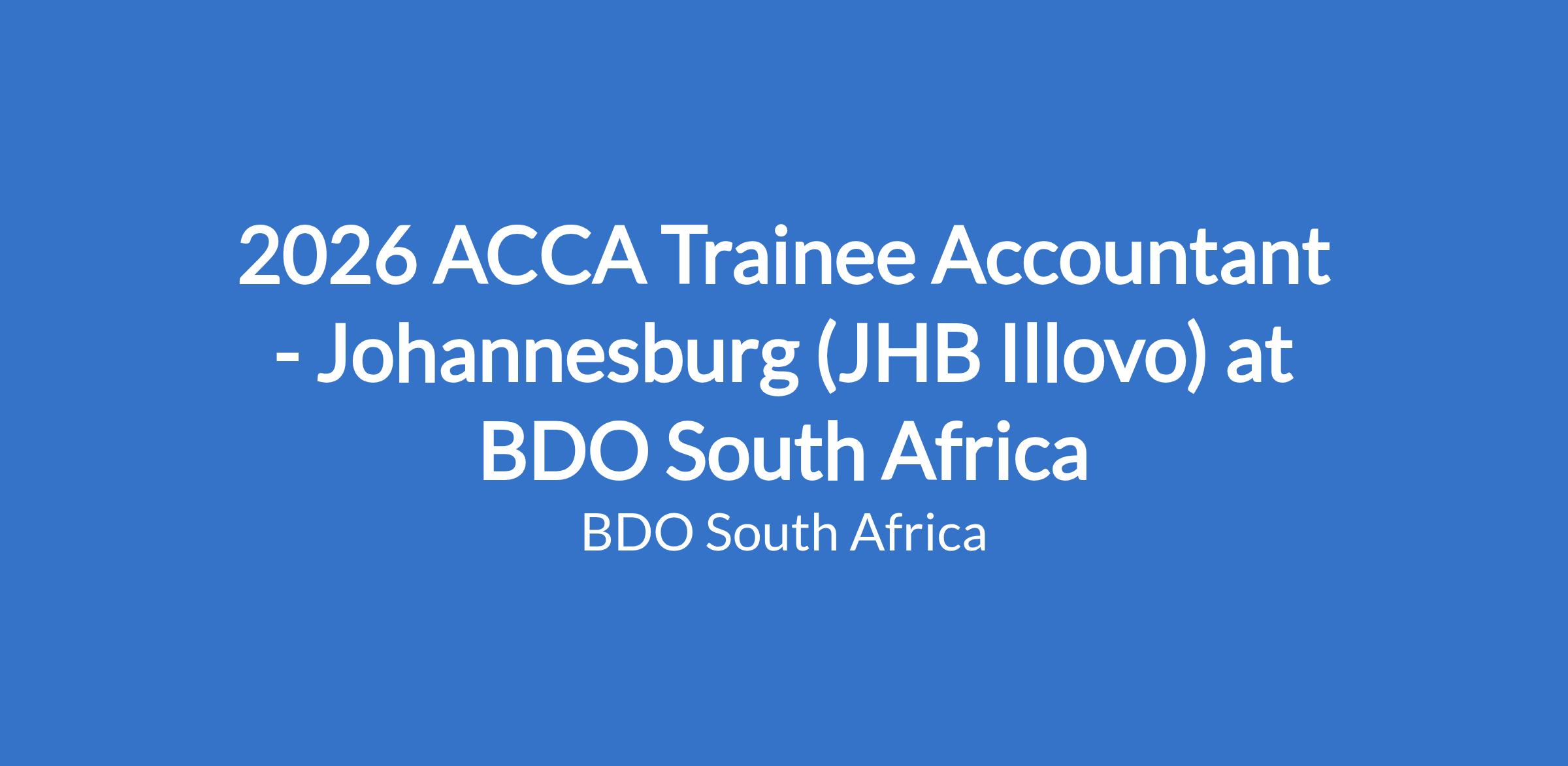 2026 ACCA Trainee Accountant - Johannesburg (JHB Illovo) at BDO South Africa