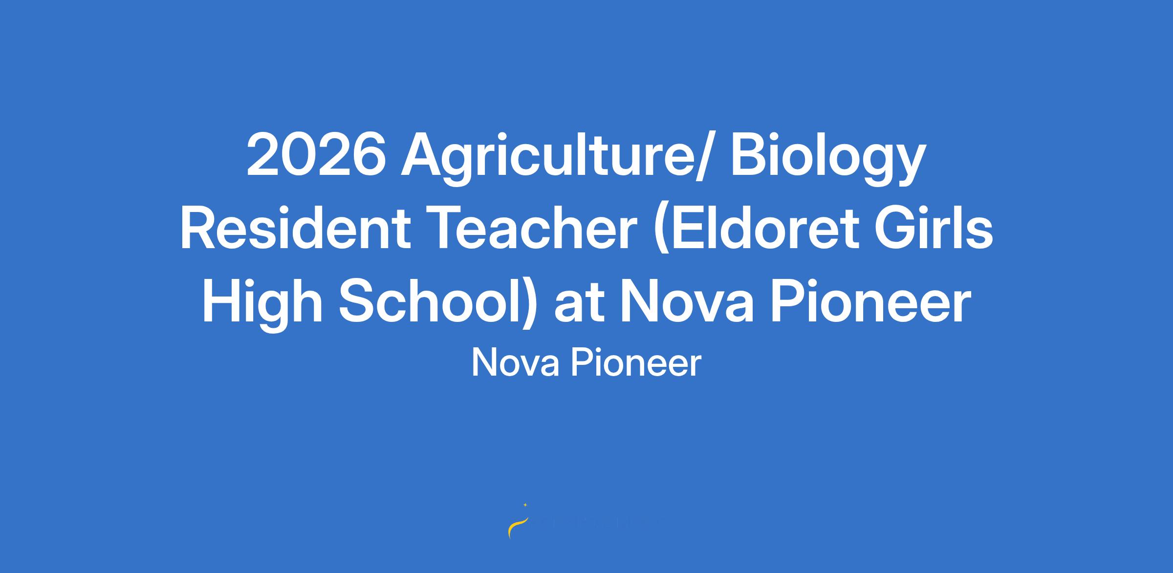 2026 Agriculture/ Biology Resident Teacher (Eldoret Girls High School) at Nova Pioneer