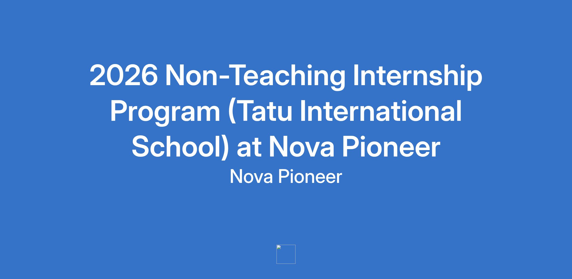 2026 Non-Teaching Internship Program (Tatu International School) at Nova Pioneer