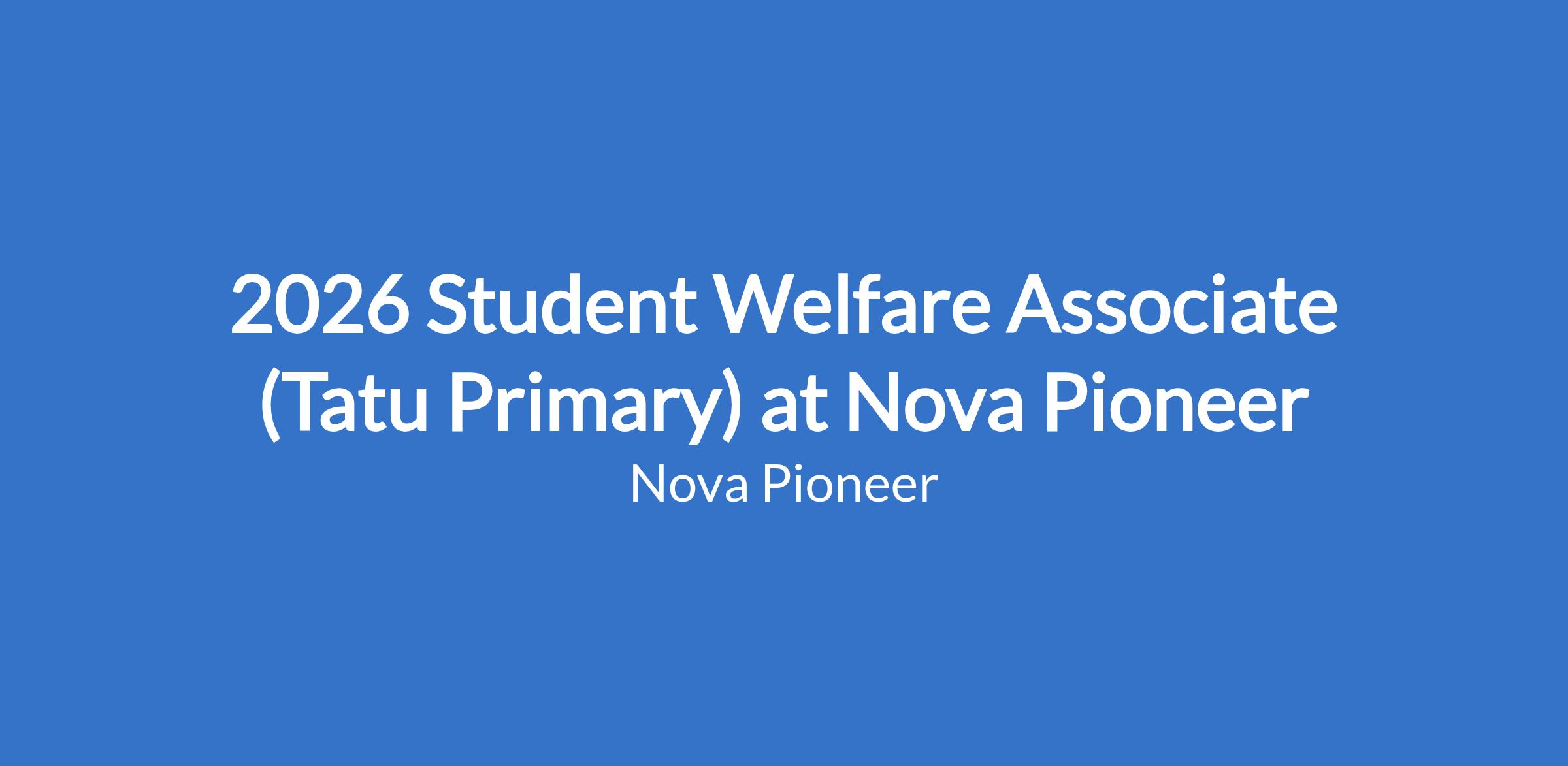 2026 Student Welfare Associate (Tatu Primary) at Nova Pioneer