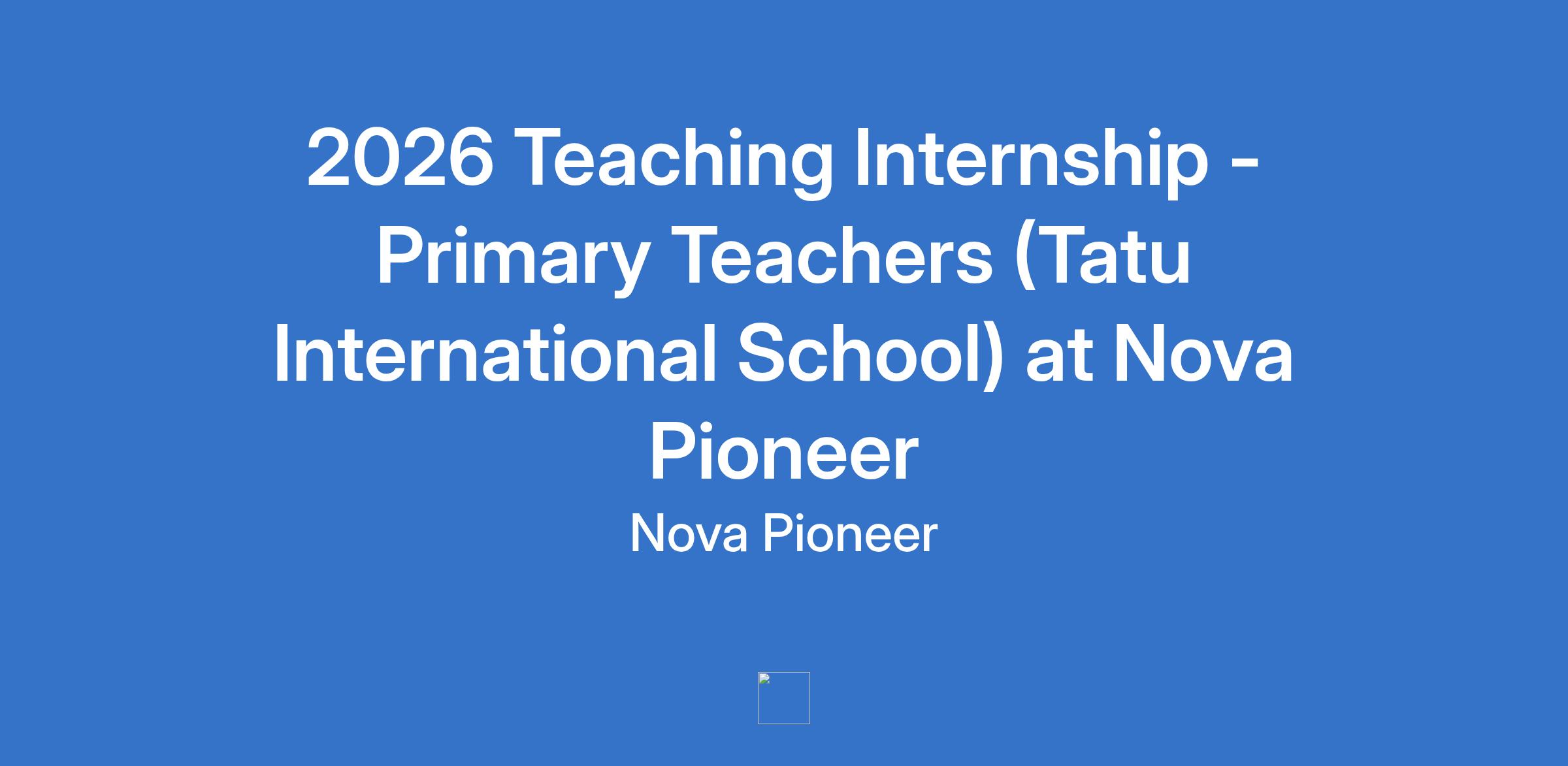 2026 Teaching Internship - Primary Teachers (Tatu International School) at Nova Pioneer