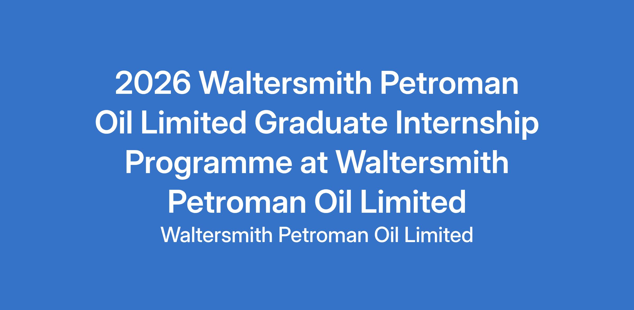 Waltersmith is offering a Graduate Internship Programme for high potential Nigerian graduates seeking hands on experience and professional development within the energy sector.