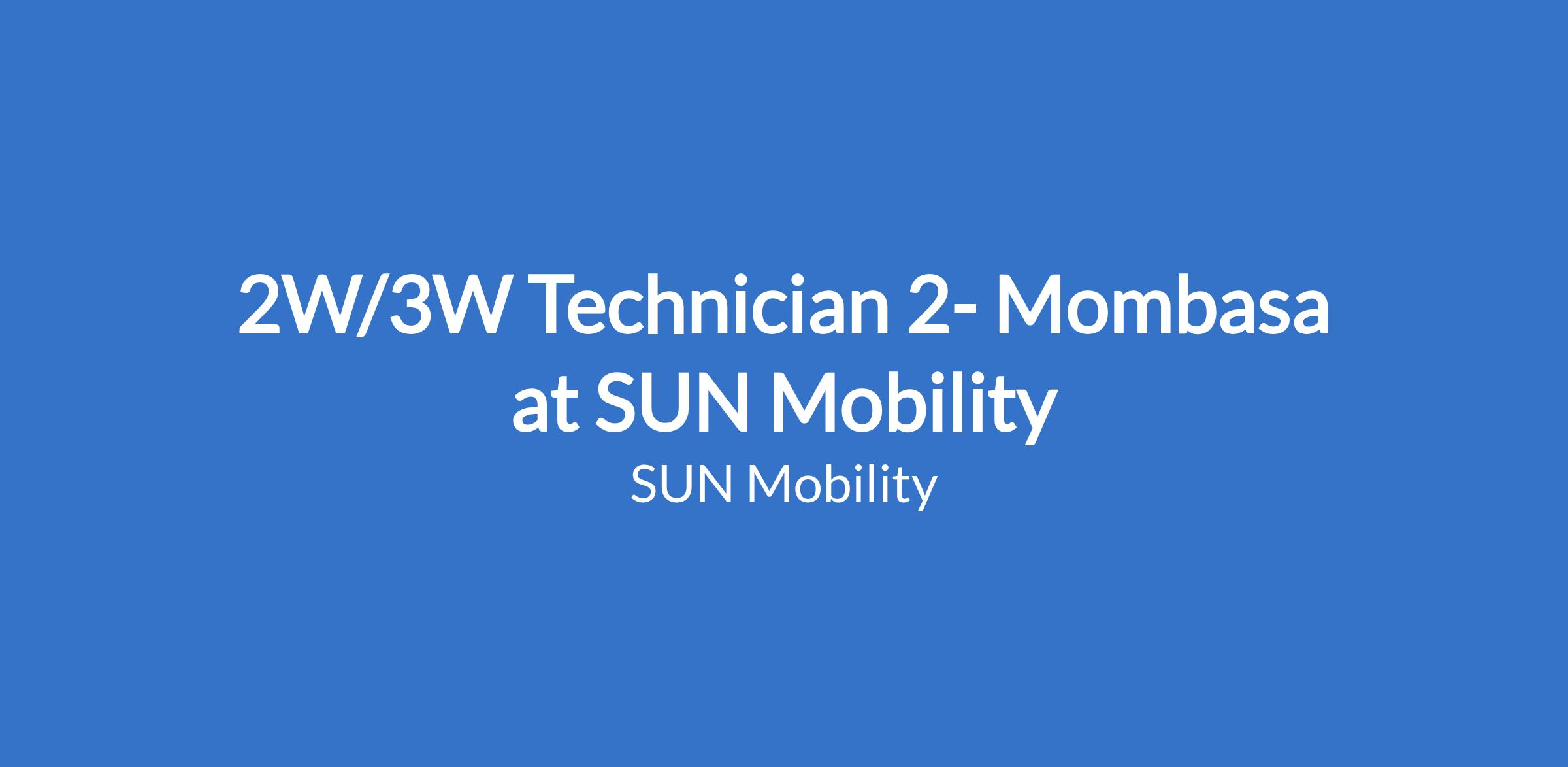 2W/3W Technician 2- Mombasa at SUN Mobility