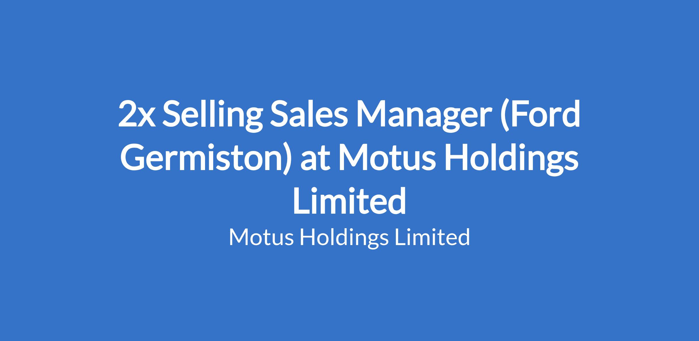 We are seeking a results-driven Selling Sales Manager to lead our vehicle sales team. The ideal candidate will have strong sales experience and a passion for the automotive industry.