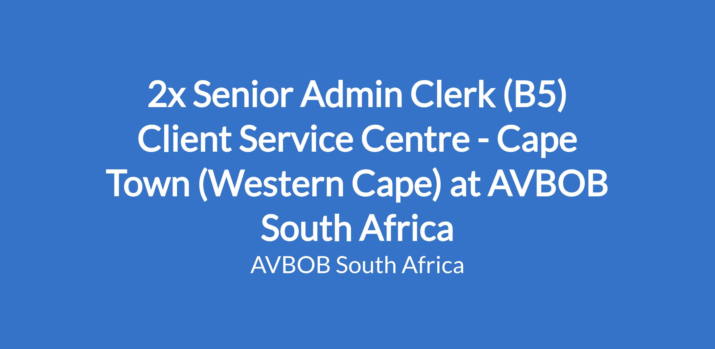 2x Senior Admin Clerk (B5) Client Service Centre - Cape Town (Western Cape) at AVBOB South Africa
