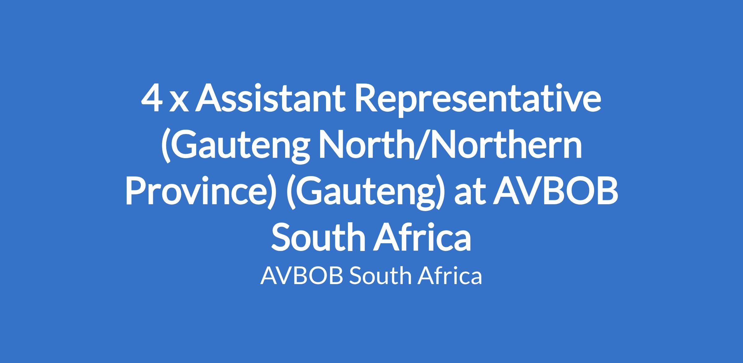 4 x Assistant Representative (Gauteng North/Northern Province) (Gauteng) at AVBOB South Africa