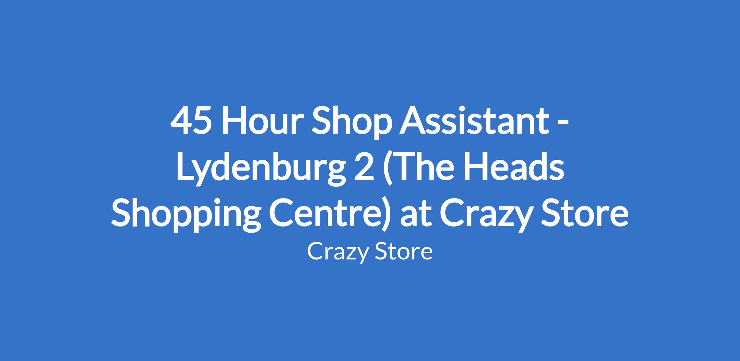 45 Hour Shop Assistant - Lydenburg 2 (The Heads Shopping Centre) at Crazy Store
