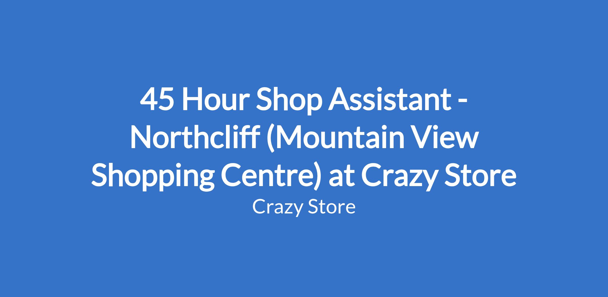 45 Hour Shop Assistant - Northcliff (Mountain View Shopping Centre) at Crazy Store