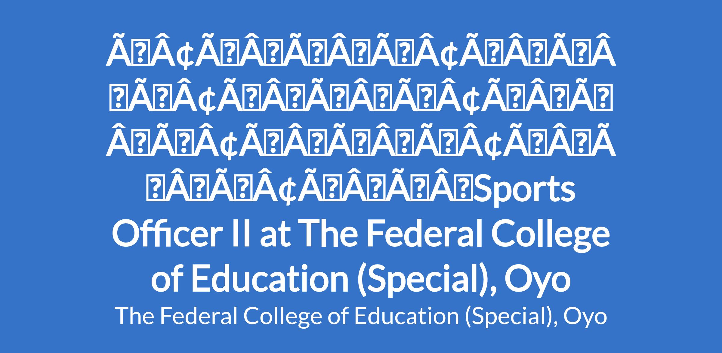 âÃÂÃÂâÃÂÃÂâÃÂÃÂâÃÂÃÂâÃÂÃÂâÃÂÃÂâÃÂÃÂSports Officer II at The Federal College of Education (Special), Oyo