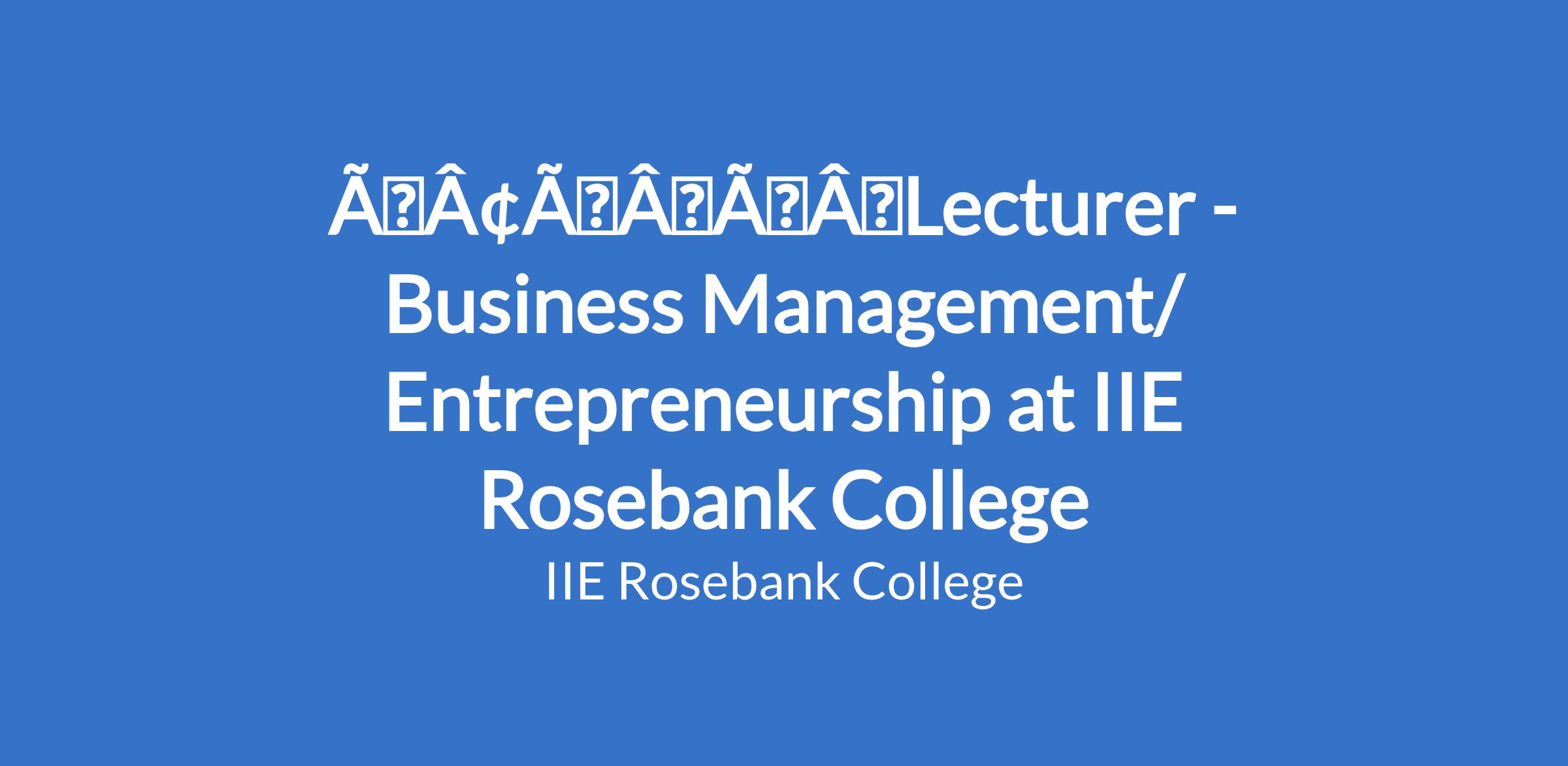 âÃÂÃÂLecturer - Business Management/ Entrepreneurship at IIE Rosebank College