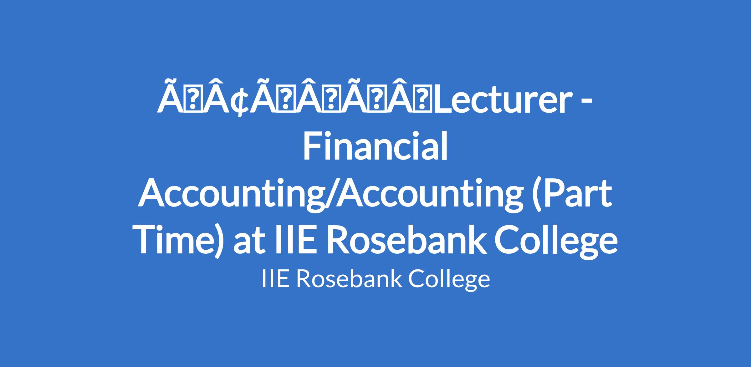 âÃÂÃÂLecturer - Financial Accounting/Accounting (Part Time) at IIE Rosebank College