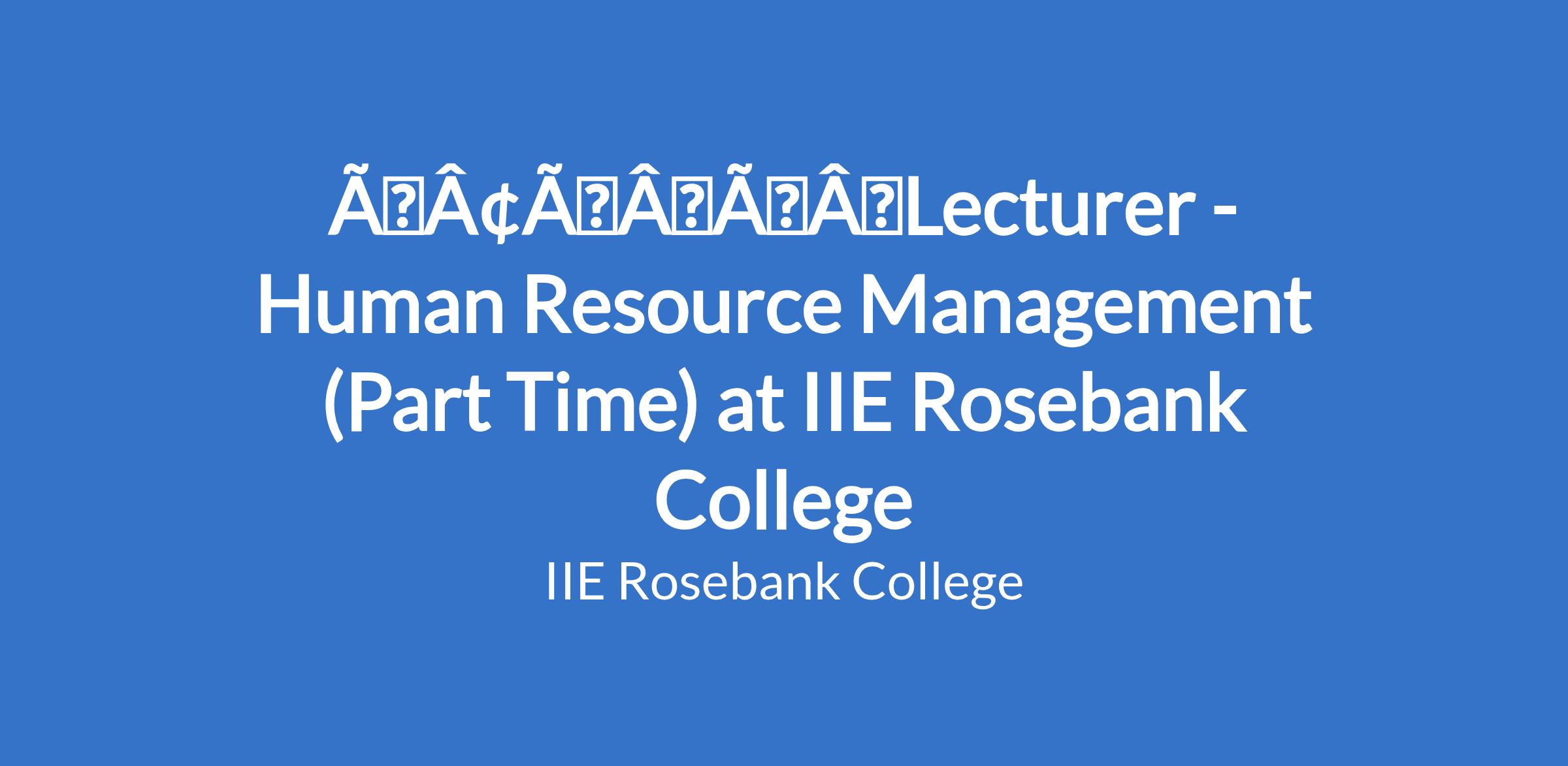 âÃÂÃÂLecturer - Human Resource Management (Part Time) at IIE Rosebank College