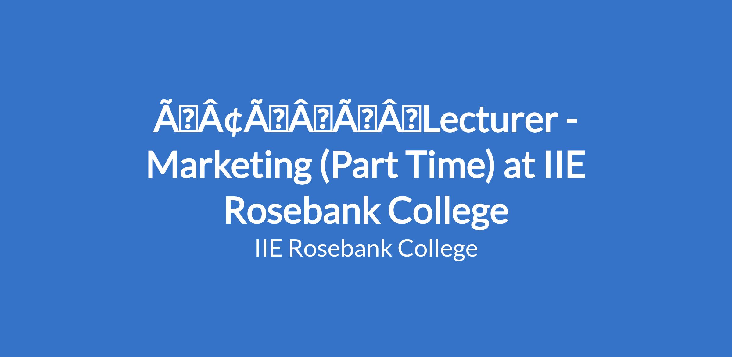 ​Lecturer - Marketing (Part Time) at IIE Rosebank College