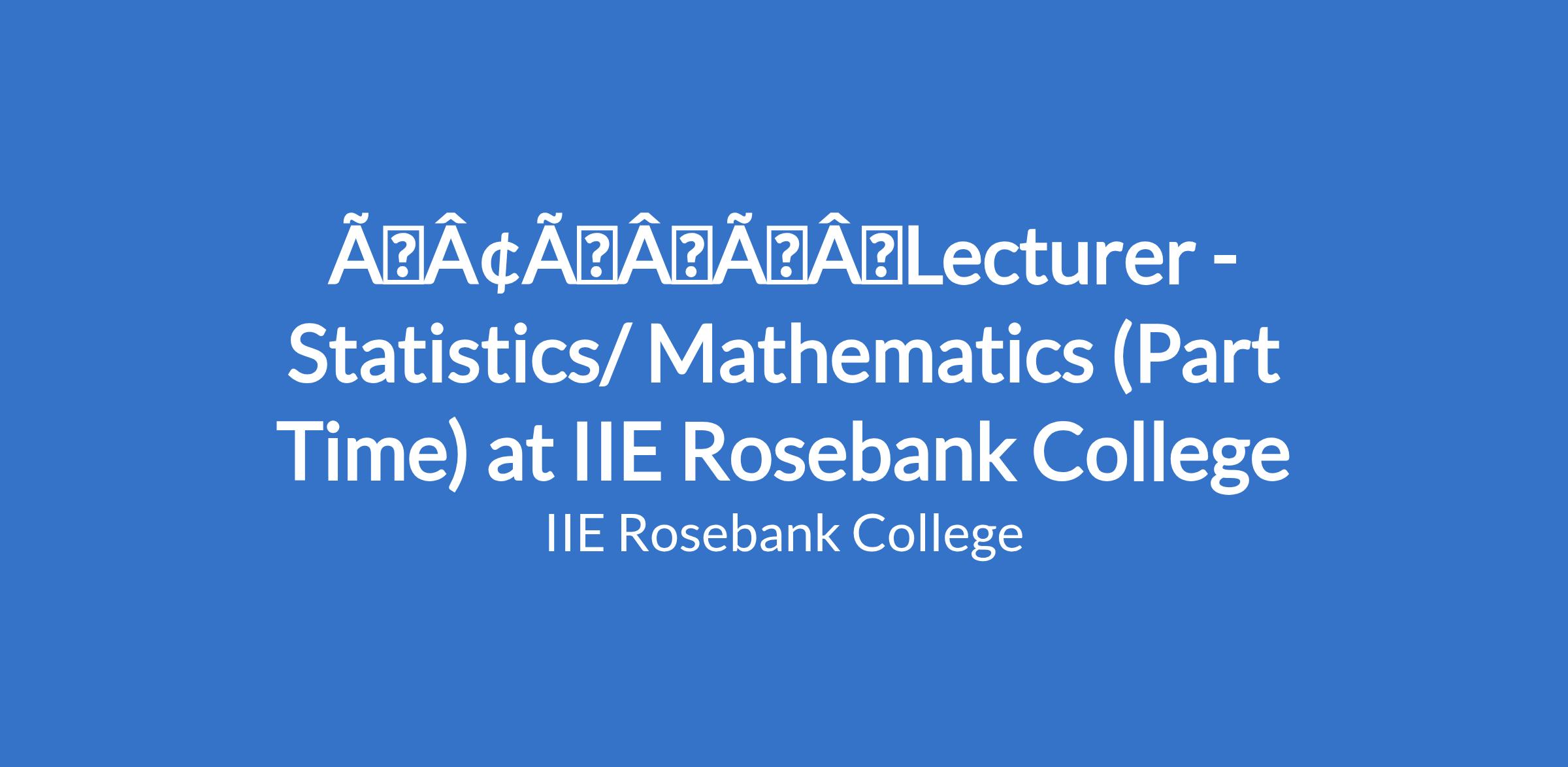 âÃÂÃÂLecturer - Statistics/ Mathematics (Part Time) at IIE Rosebank College