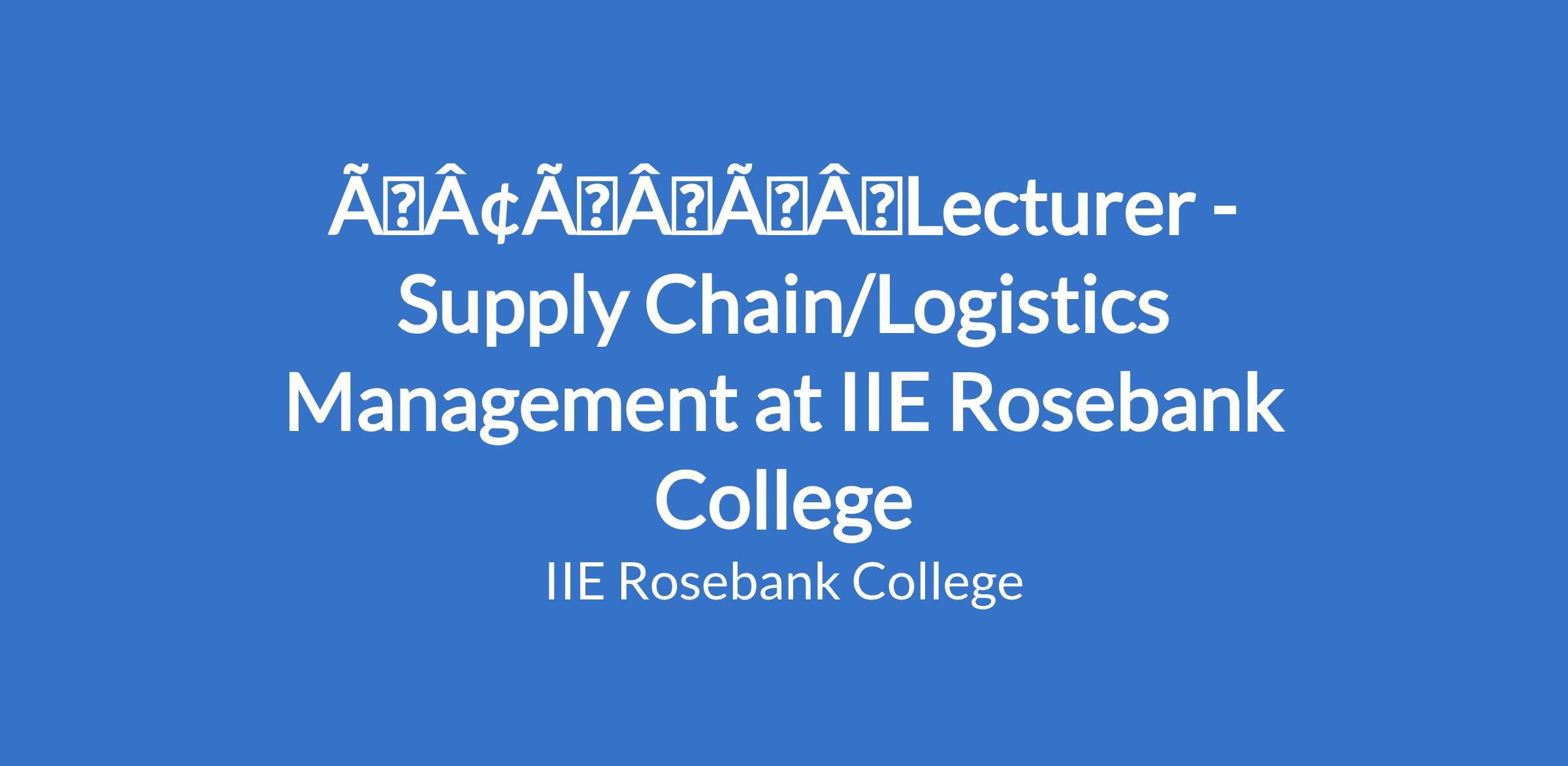 âÃÂÃÂLecturer - Supply Chain/Logistics Management at IIE Rosebank College