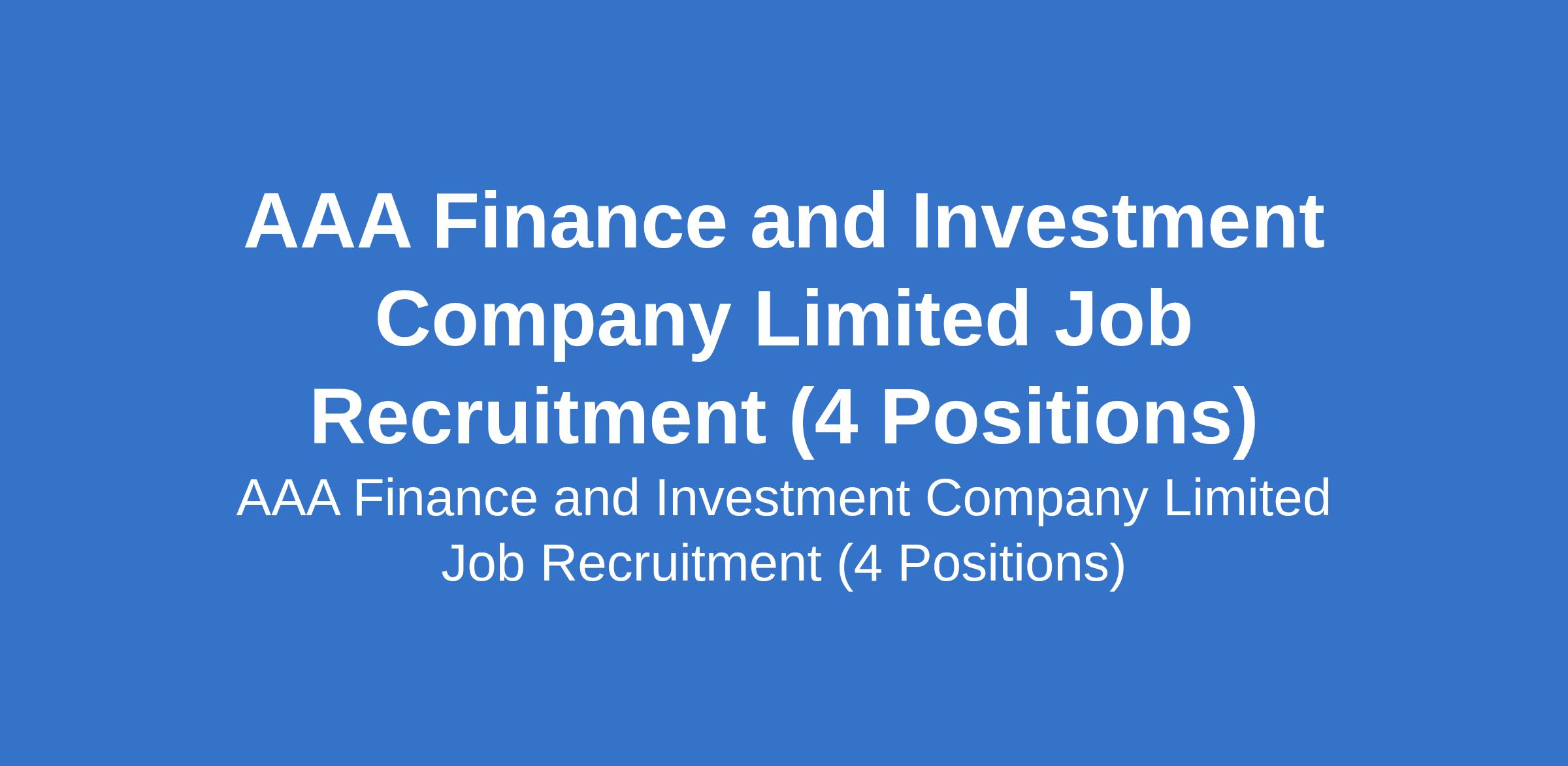 AAA Finance and Investment Company Limited is currently seeking applications from suitably qualified candidates to fill the following positions in Lagos State: Business Development Manager, Audit and Internal Control Officer, and Accounts & Finance Manager.