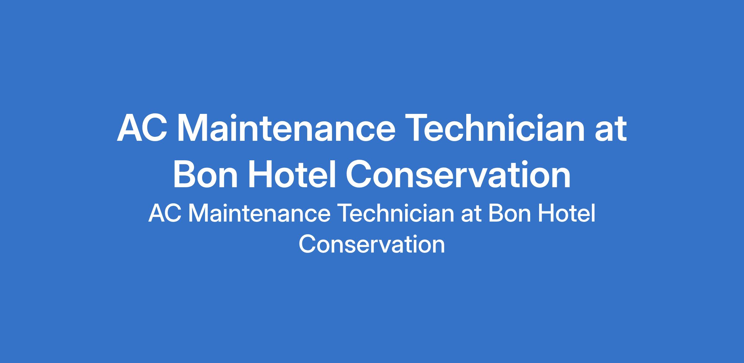 Bon Hotel Conservation is recruiting to fill the position of: AC Maintenance Technician. The position is located in Lekki, Lagos State. Salary: N120,000 - N150,000 monthly. Interested candidates should possess an OND, HND, or Bachelor's Degree with 2-11 years experience.