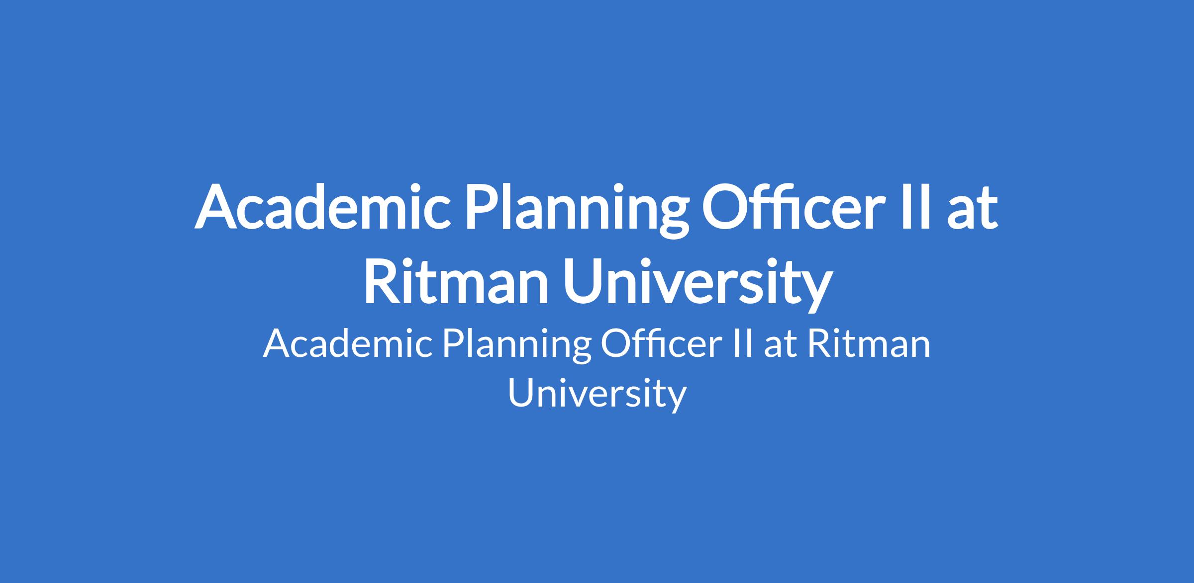 Ritman University is recruiting to fill the position of: Academic Planning Officer II. The position is located in Ikot Ekpene, Akwa Ibom State. Interested candidates should possess a Bachelors Degree not below Second-Class Lower Division in a relevant discipline.