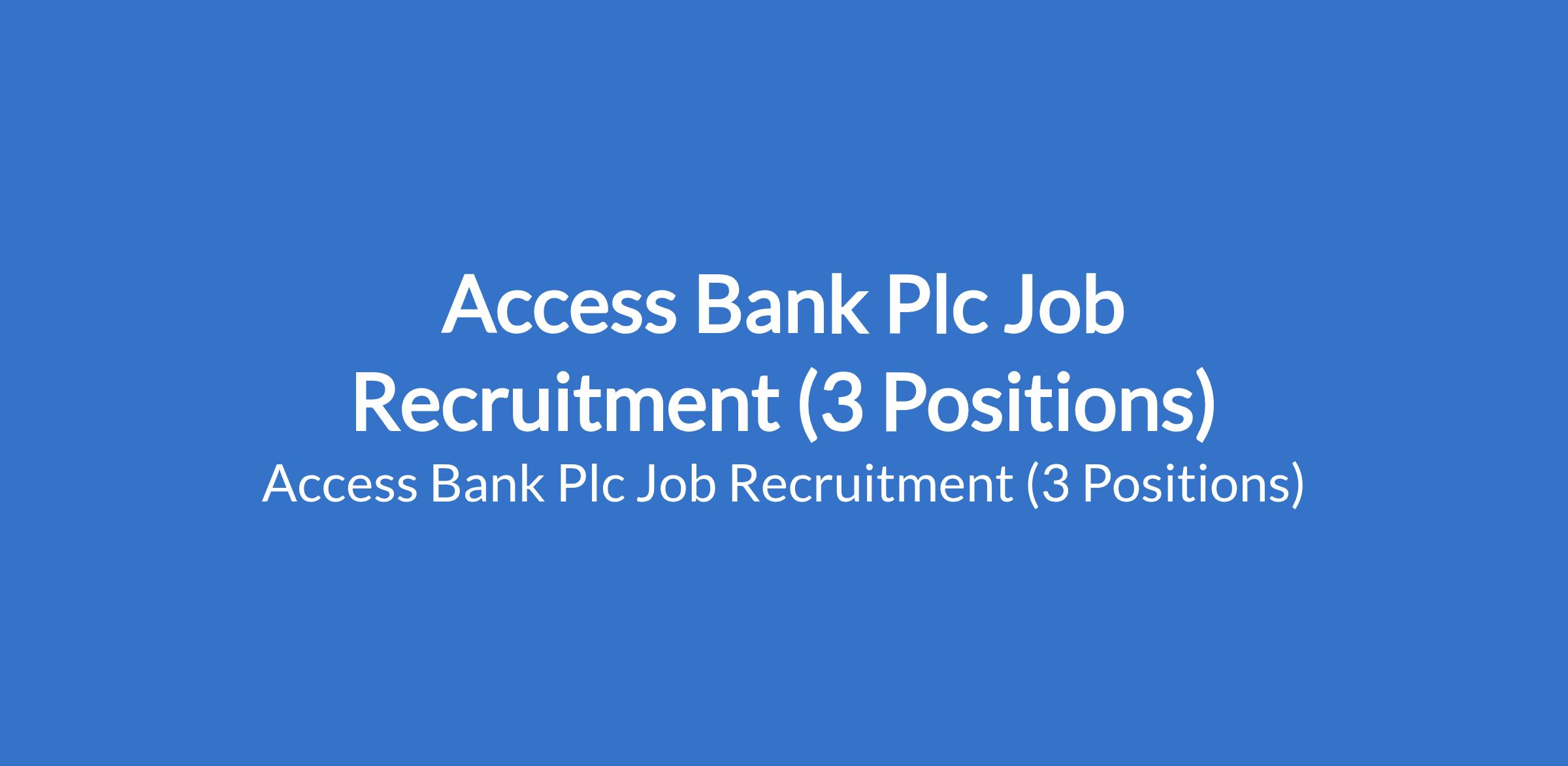 Access Bank Plc Job Recruitment (3 Positions)