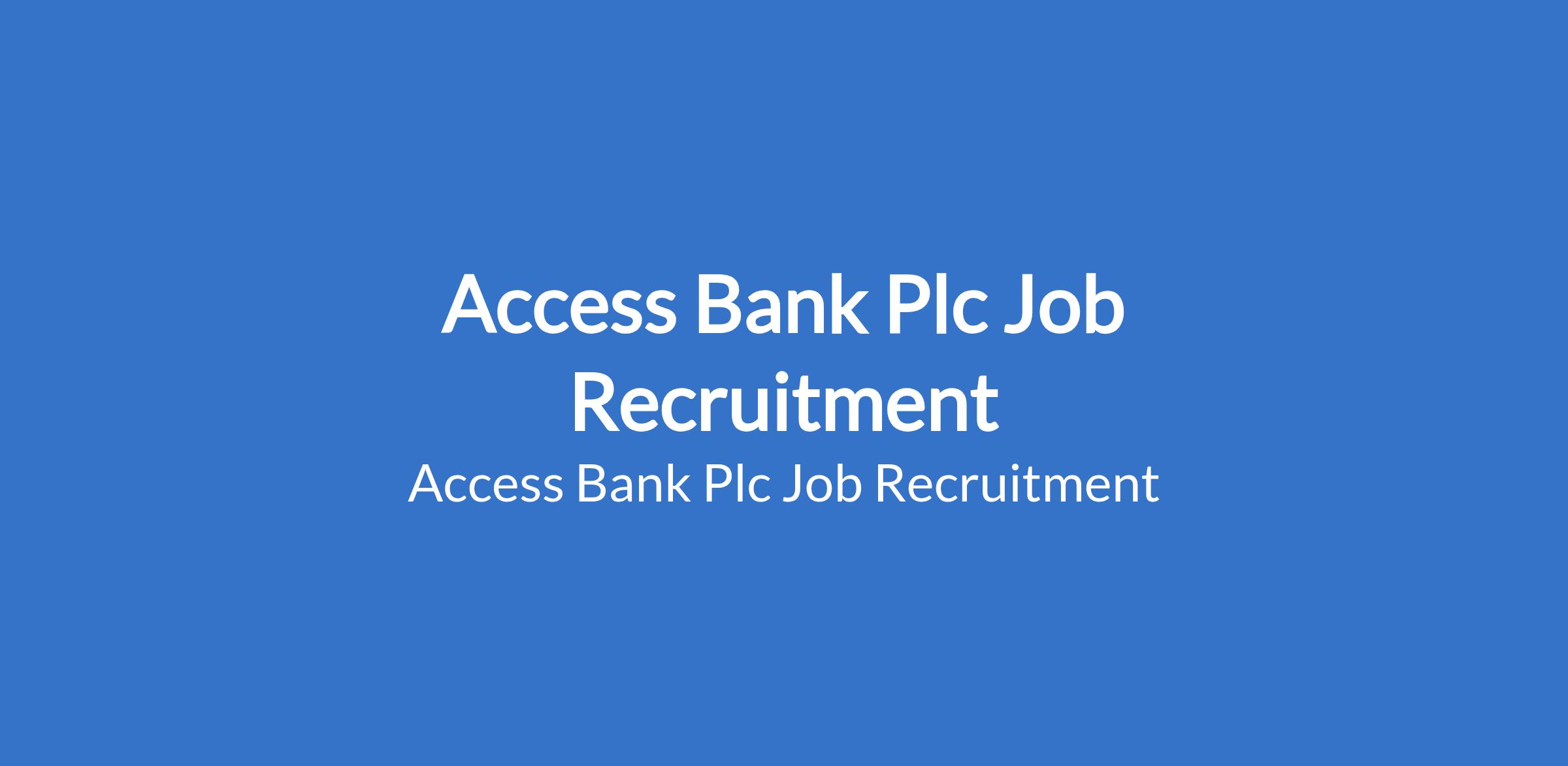 Access Bank Plc Job Recruitment