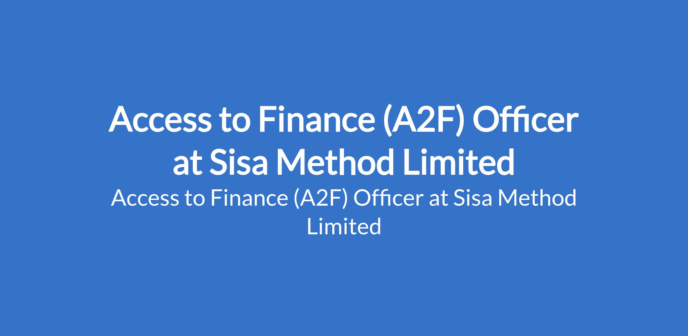 Sisa Method Limited is recruiting to fill the position of: Access to Finance (A2F) Officer. The position is located in Lagos State. Interested candidates should possess a Degree in Finance, Economics, Accounting, Business, or a related field with 2-4 years of experience in microfinance, banking, or supporting small businesses and communities.