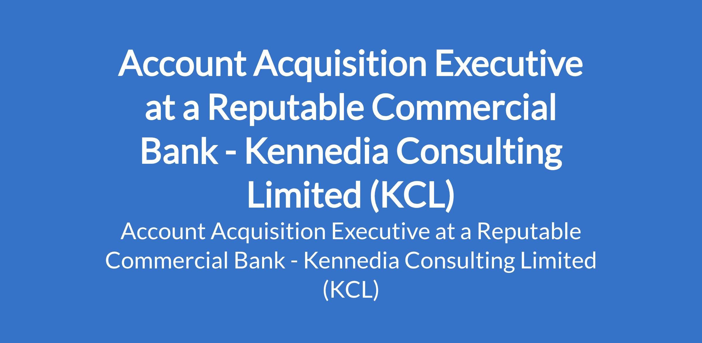 Kennedia Consulting Limited (KCL) - Our client, a reputable commercial bank is recruiting to fill the position of: Account Acquisition Executive. The position is located in Obalende, Lagos State. Salary: N199,000 per month. Interested candidates should possess an HND / B.Sc Degree in any discipline.