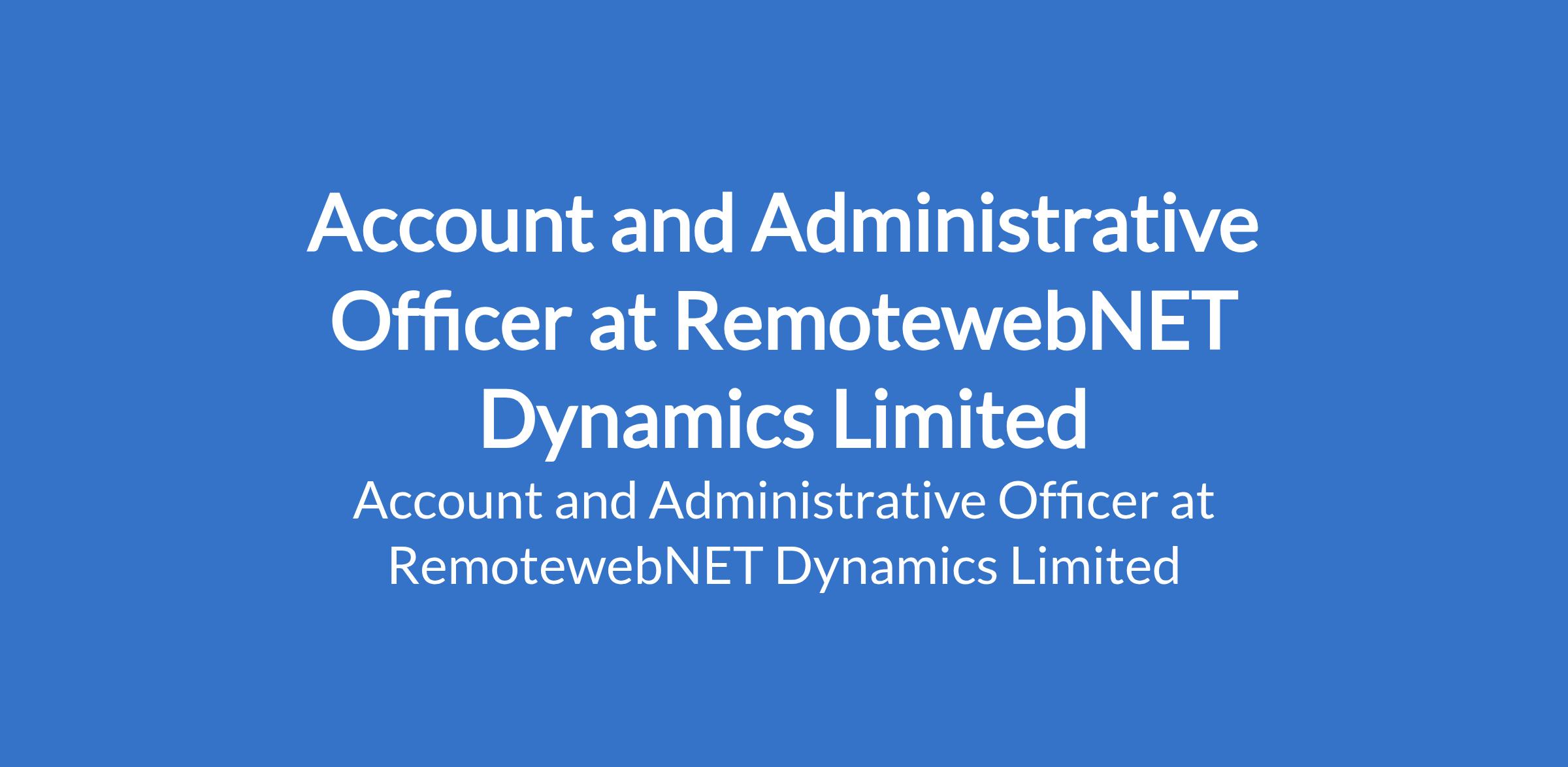 RemotewebNET Dynamics Limited is recruiting to fill the position of: Account and Administrative Officer. The position is located in Abuja (FCT). Salary: N150,000 monthly. Interested candidates should possess a Bachelors Degree in Accounting, Finance, Business Administration with 12 years experience in similar administrative and accounting role.