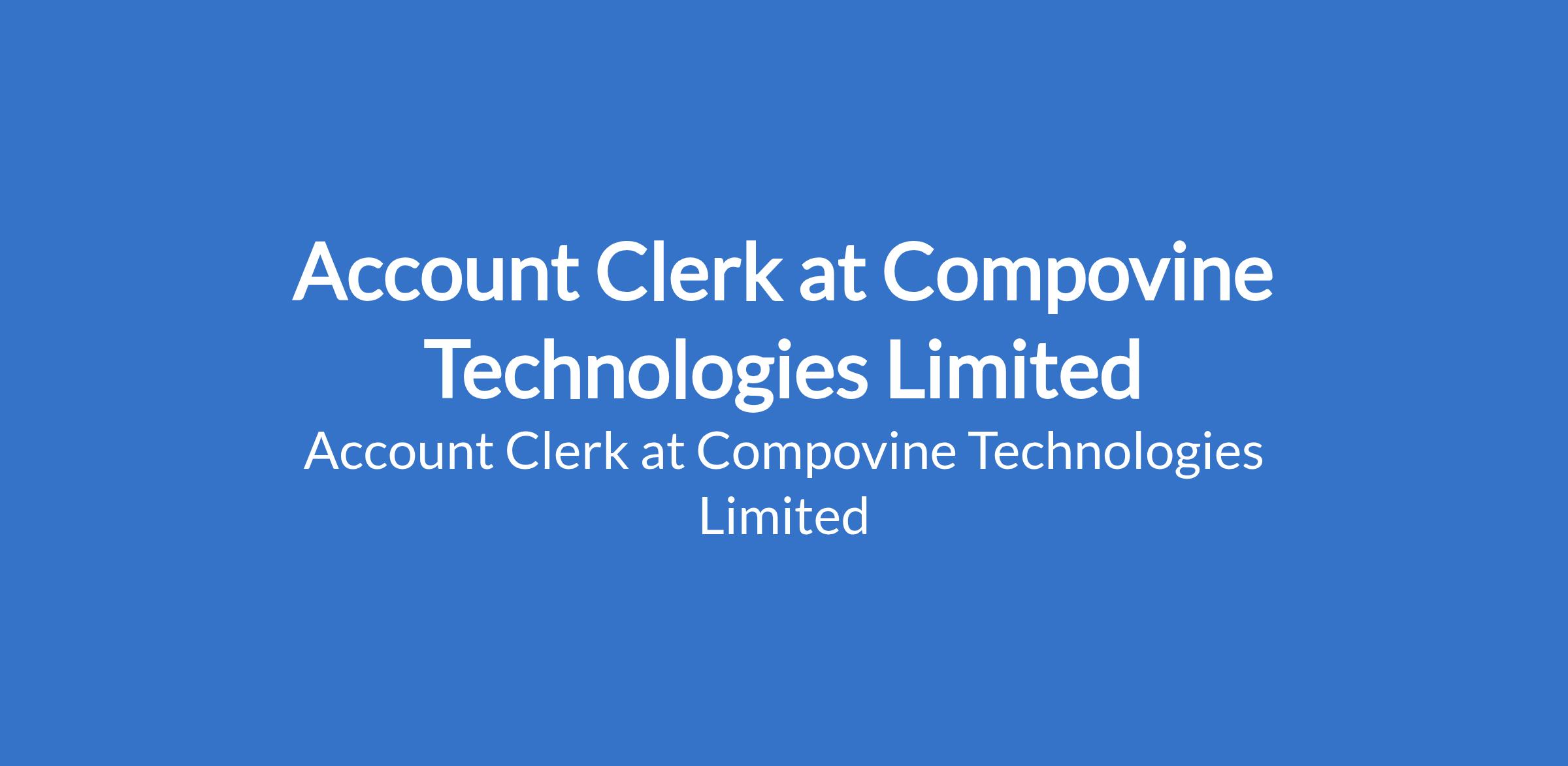 Compovine Technologies Limited is recruiting to fill the position of: Account Clerk. The position is located in Ikeja, Lagos State. Salary: N150,000 - N200,000 monthly. Interested candidates should possess an HND / Bachelor`s Degree with 3 - 10 years experience.