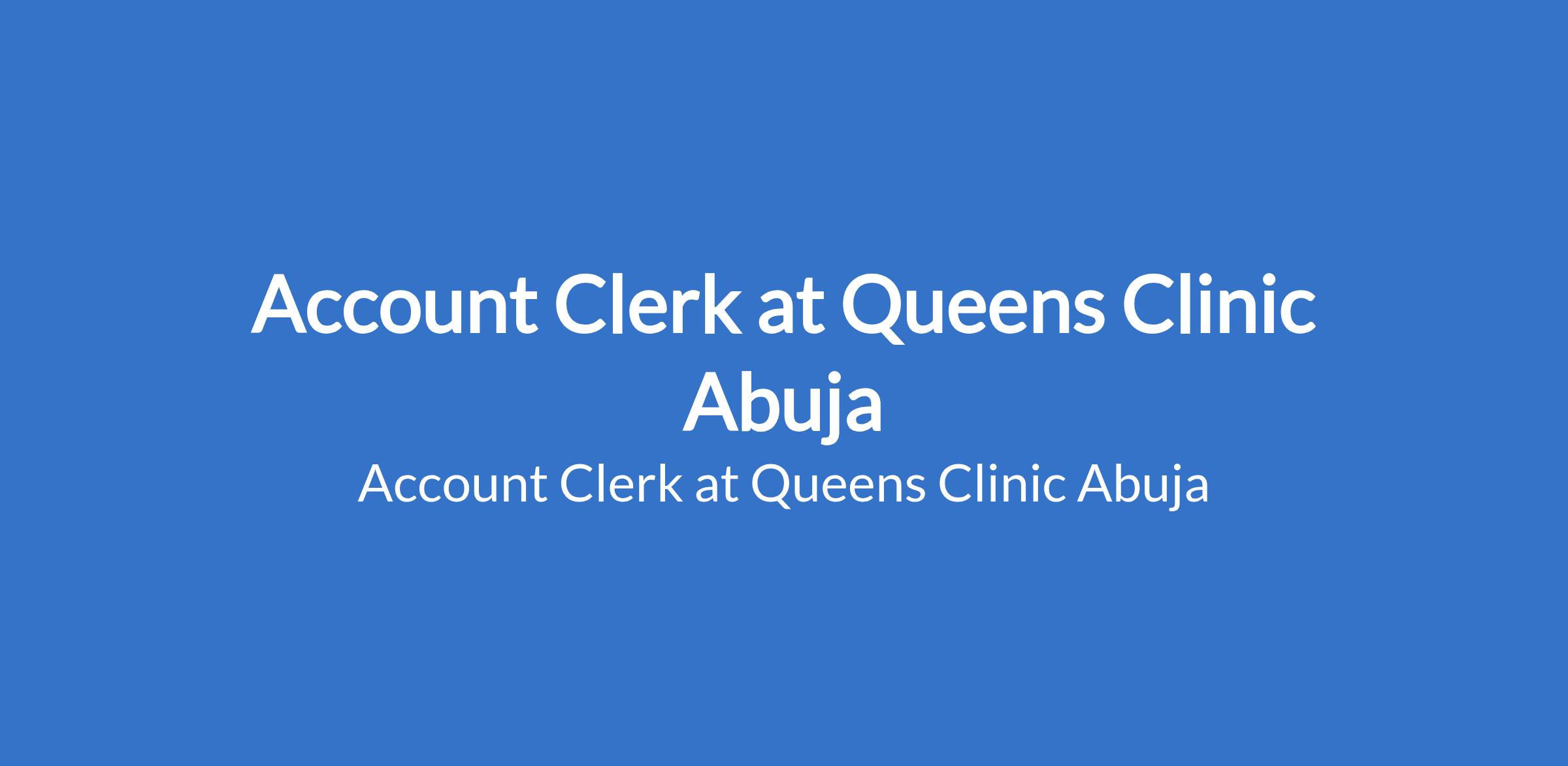 Account Clerk at Queens Clinic Abuja