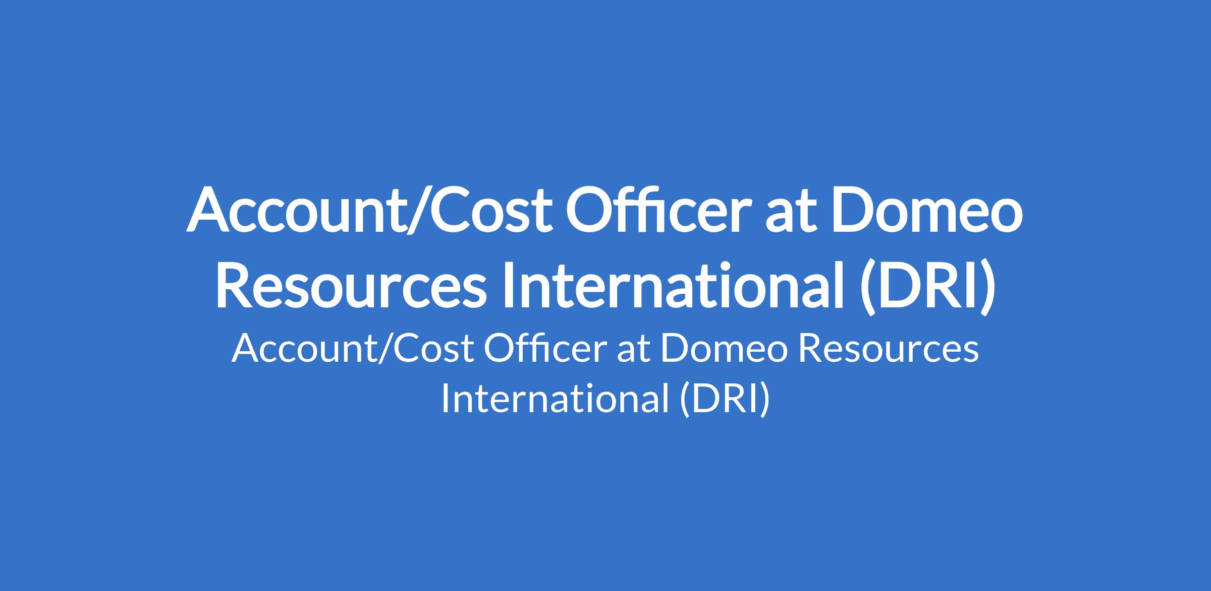 Domeo Resources International (DRI) is recruiting to fill the position of: Account/Cost Officer. The position is located in Abuja (FCT). Interested candidates should possess a Degree in Accounting, Finance, or related field with a minimum of 2 years experience in accounting or finance roles.