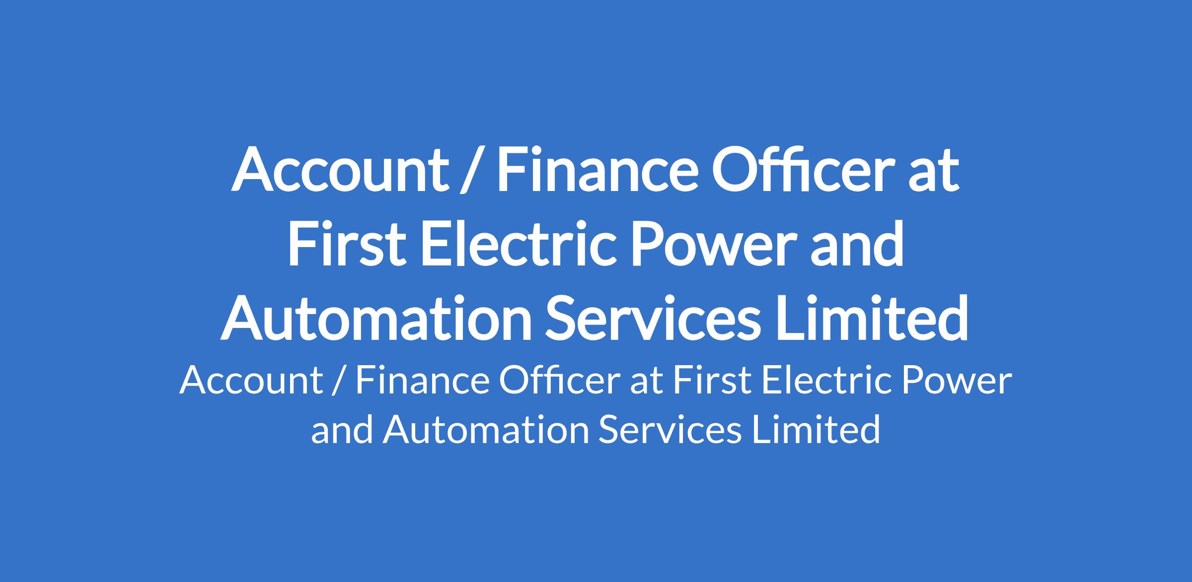 First Electric Power and Automation Services Limited is recruiting to fill the position of: Account / Finance Officer. The position is located in Ajah, Lagos State. Interested candidates should possess a Bachelors Degree in Accounting, Finance, or a related field with 13 years of relevant experience in accounting or finance.