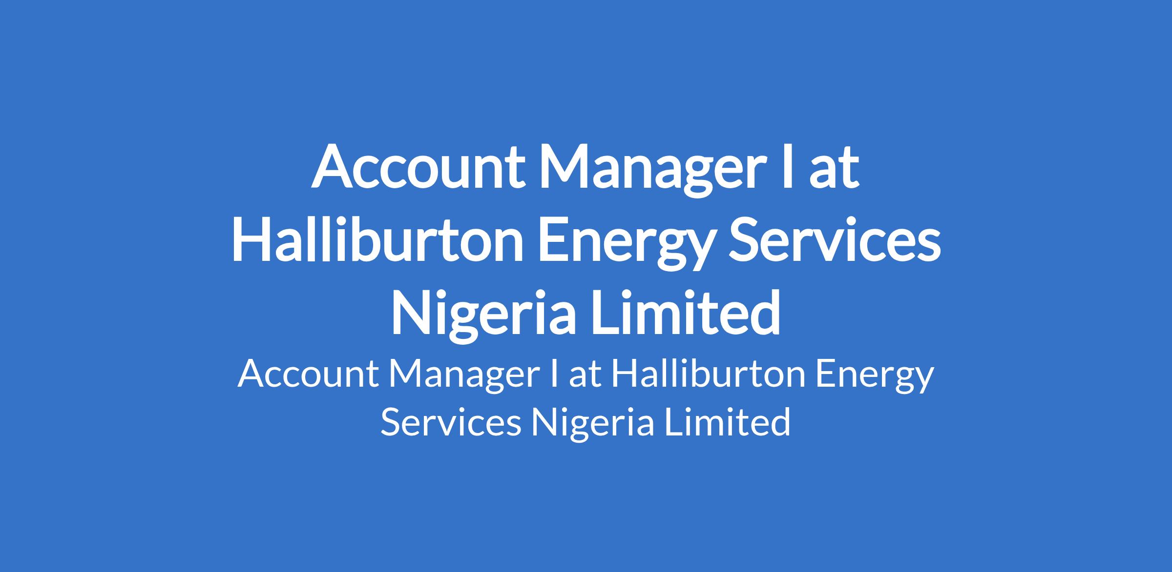 Halliburton Energy Services Nigeria Limited is recruiting to fill the position of: Account Manager I. The position is located in Lagos State. Interested candidates should possess relevant qualifications.