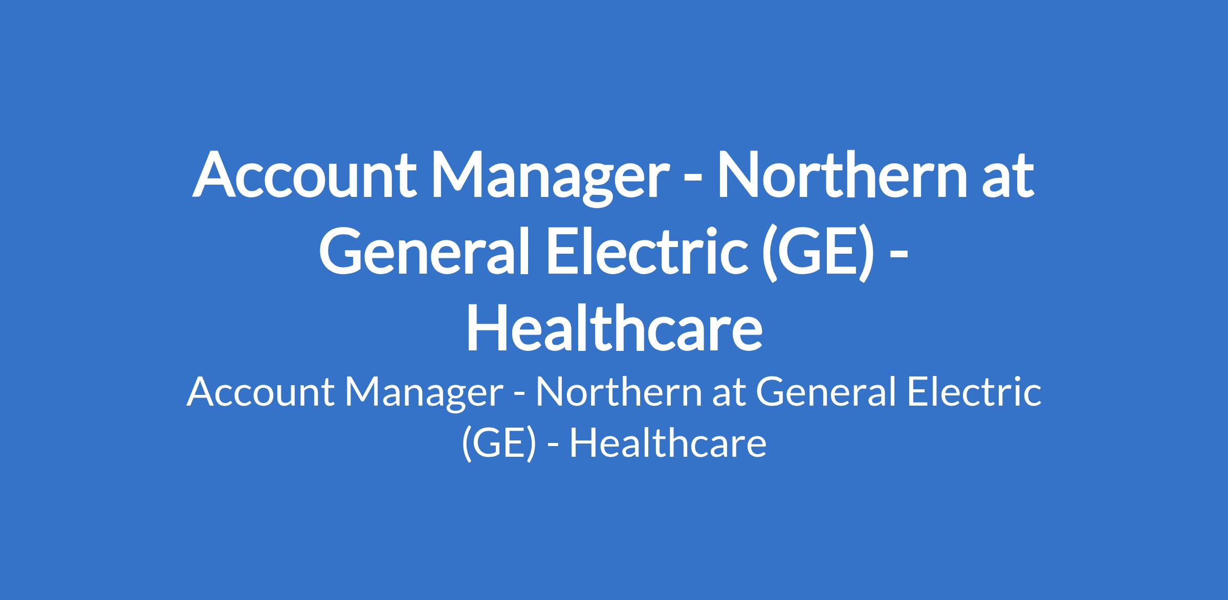 General Electric (GE) - Healthcare is recruiting to fill the position of: Account Manager - Northern. The position is located in Abuja. Interested candidates should possess a Bachelors Degree with previous Healthcare high-end capital equipment sales experience or Life Science.