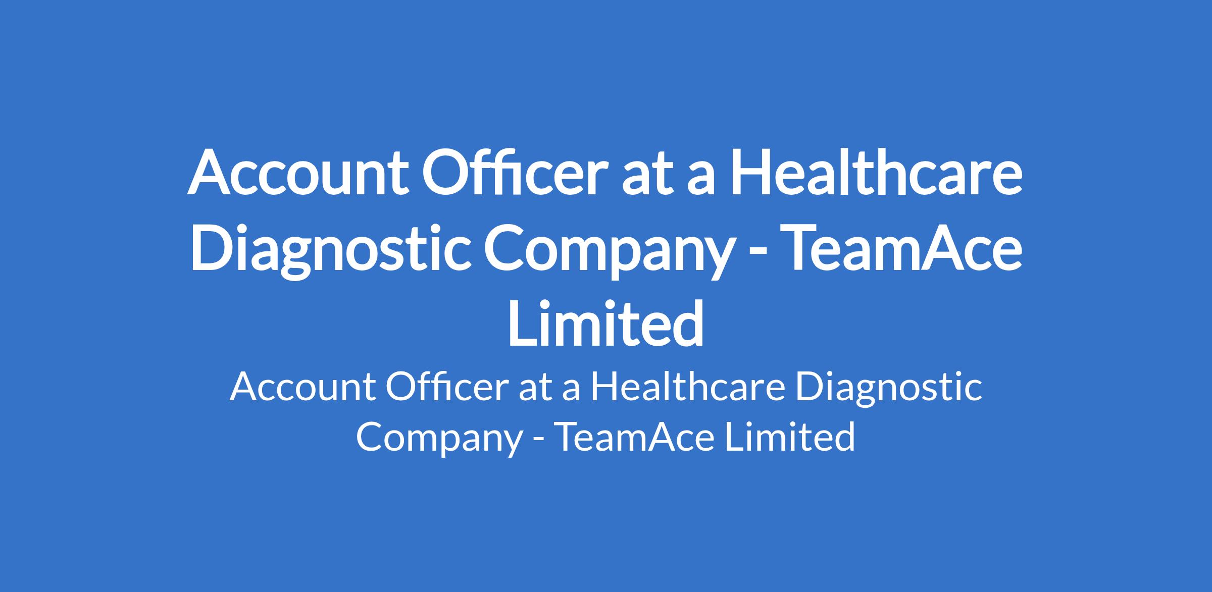 TeamAce Limited - Our client, a Healthcare Diagnostic company is recruiting to fill the position of: Account Officer. The position is located in Agodi, Ibadan - Oyo State. Interested candidates should possess a Bachelors Degree in Accounting, Finance, or related fields with 2 - 4 years experience in accounting or finance roles.