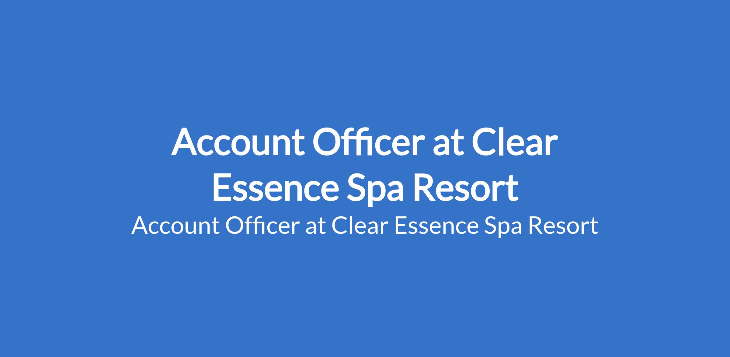 Account Officer at Clear Essence Spa Resort