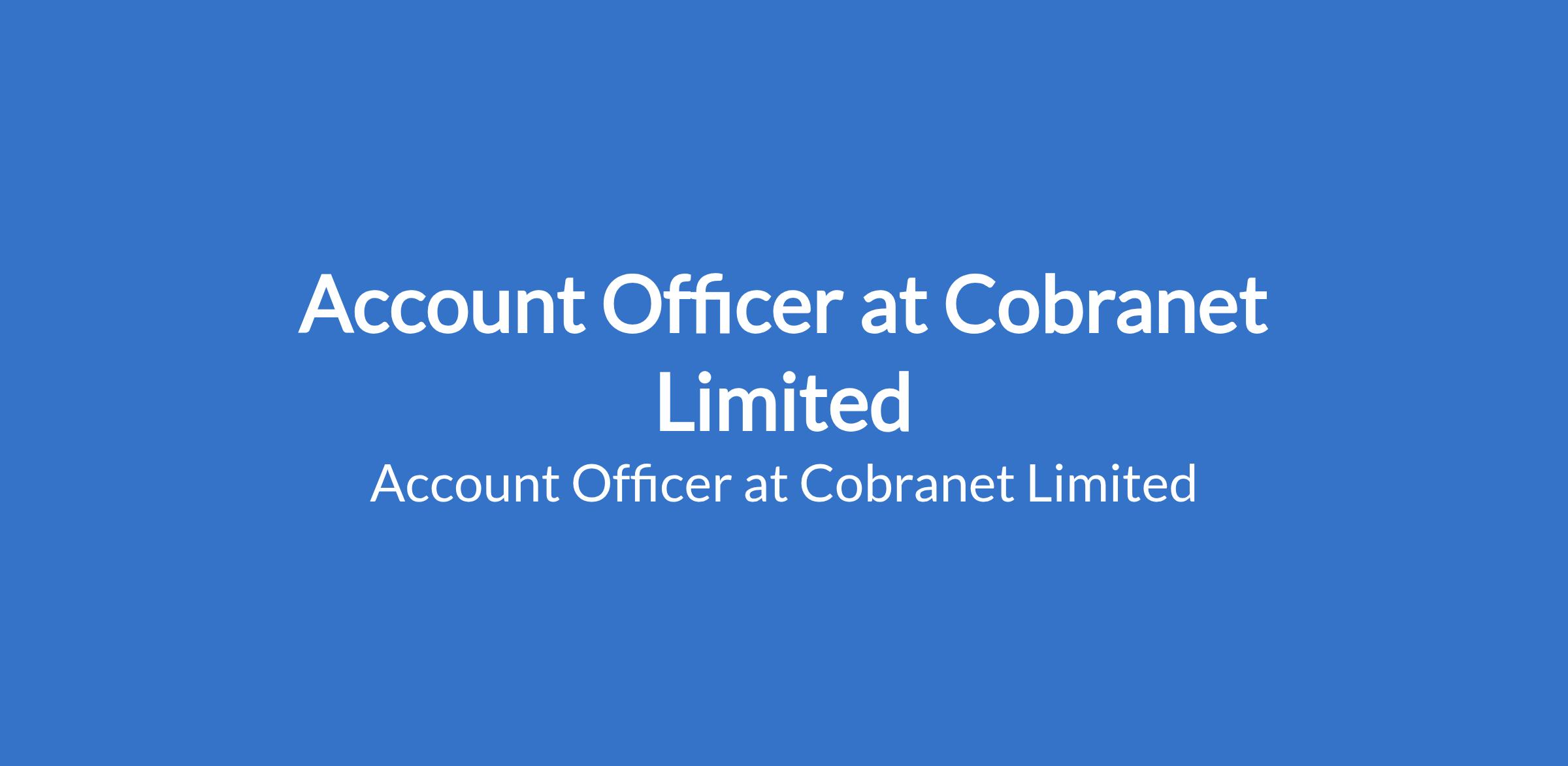 Cobranet Limited is recruiting to fill the position of: Account Officer. The position is located in Lagos State. Interested candidates should possess a B.Sc Degree or it equivalent in Accounting or Finance background with 3 - 5 years Cognate experience in Accounting or Finance.