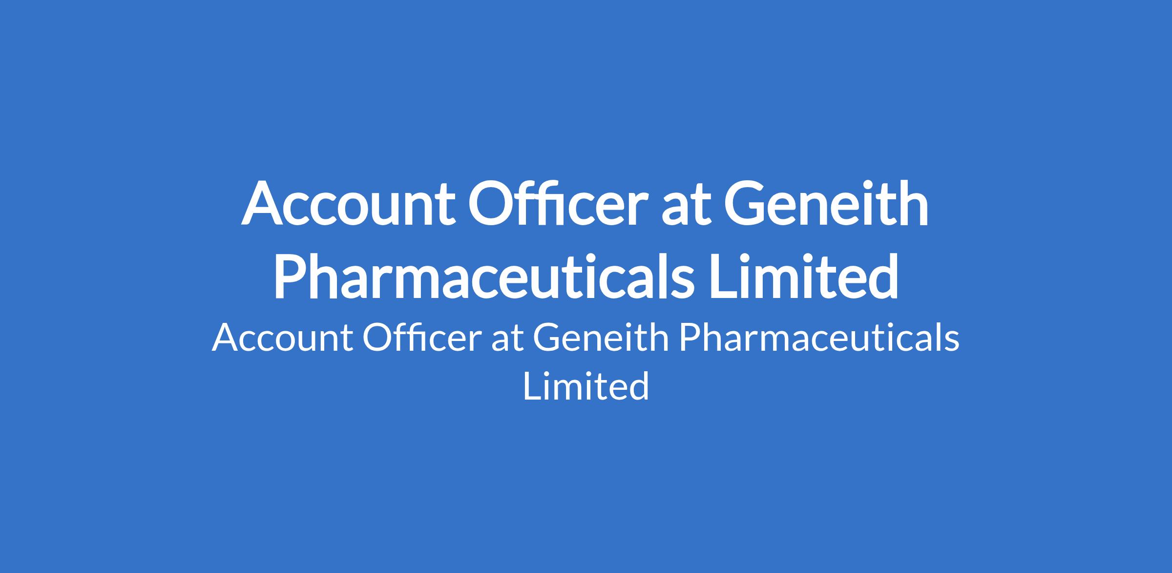 Geneith Pharmaceuticals Limited is recruiting to fill the position of: Account Officer. The position is located in Lagos State. Interested candidates should possess a Bachelors Degree in Accounting, Finance, or related fields with 3-5 years prior experience in a similar role.