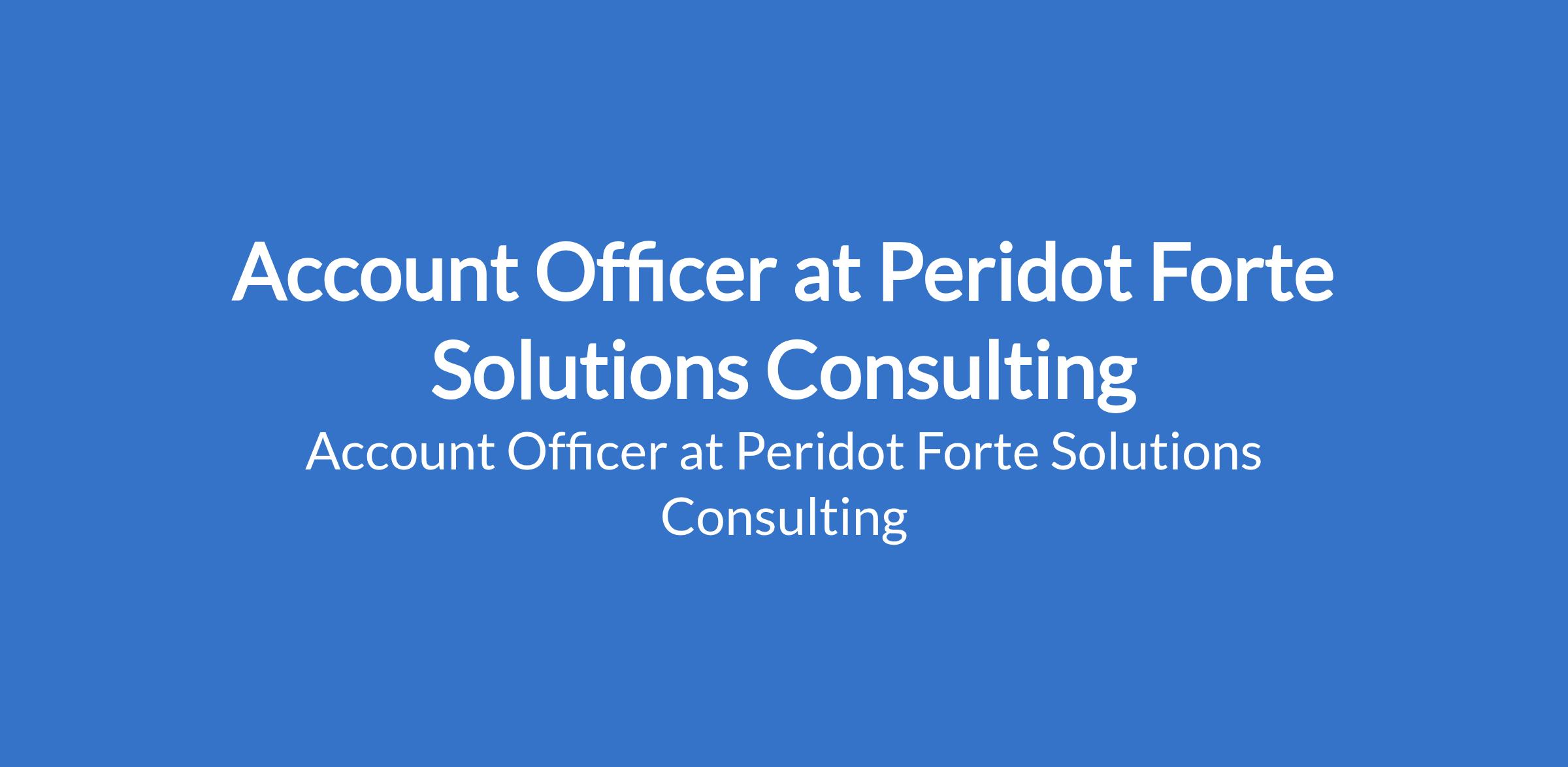 Peridot Forte Solutions Consulting is recruiting to fill the position of: Account Officer. The position is located in Lagos State. Interested candidate should possess a First Degree in Accounting, Finance, or a related discipline with 1 - 2 years relevant experience in an accounting firm, consulting firm, or audit environment.