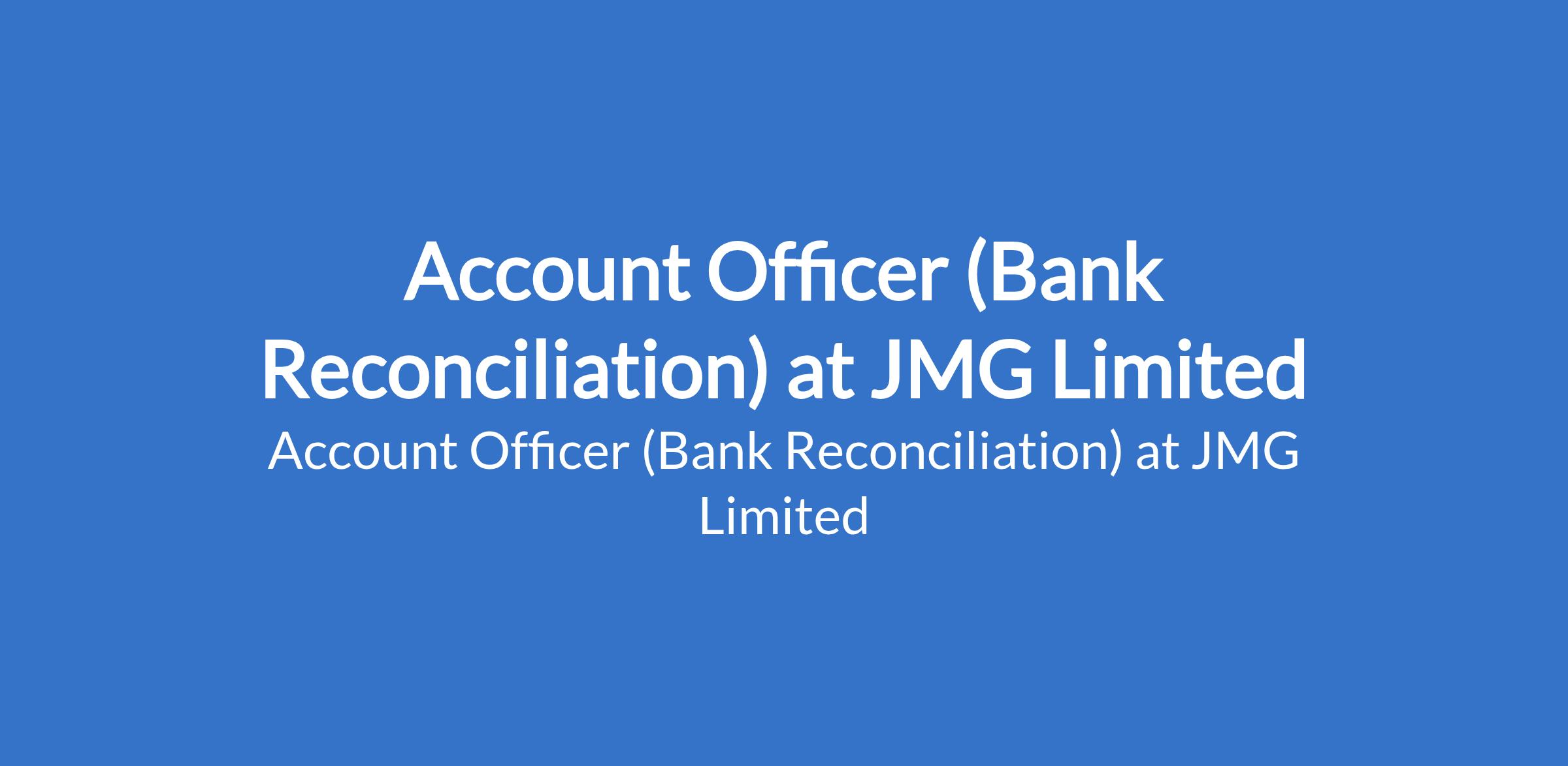 JMG Limited is recruiting to fill the position of: Account Officer (Bank Reconciliation). The position is located in Victoria Island, Lagos State. Interested candidates should possess a B.Sc / HND in Accounting, Finance, Banking & Finance, Economics, or related discipline with 1 3 years experience in accounting, bank reconciliation, or financial operations. ICAN / ACCA certification or progress toward certification is an added advantage.