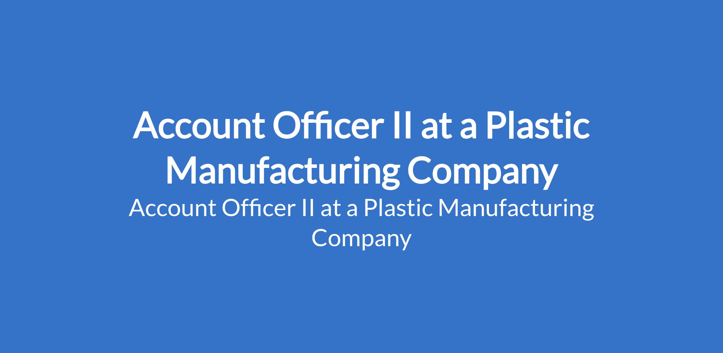 Account Officer II at a Plastic Manufacturing Company