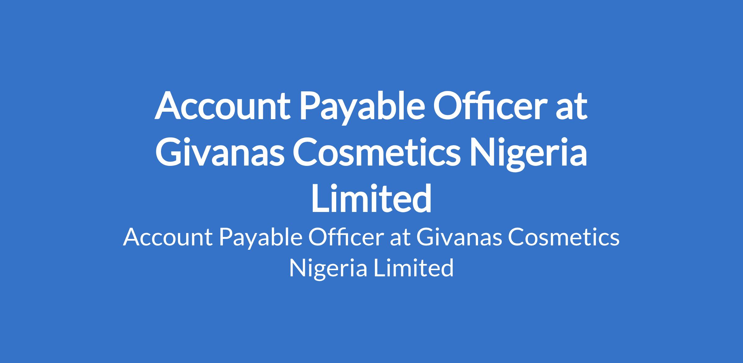 Givanas Cosmetics Nigeria Limited is recruiting to fill the position of: Account Payable Officer. The position is located in Ikeja, Lagos State. Salary: N169,000 / month. Interested candidates should be a Graduate in Accounting and other related field with 2 4 years related experience.