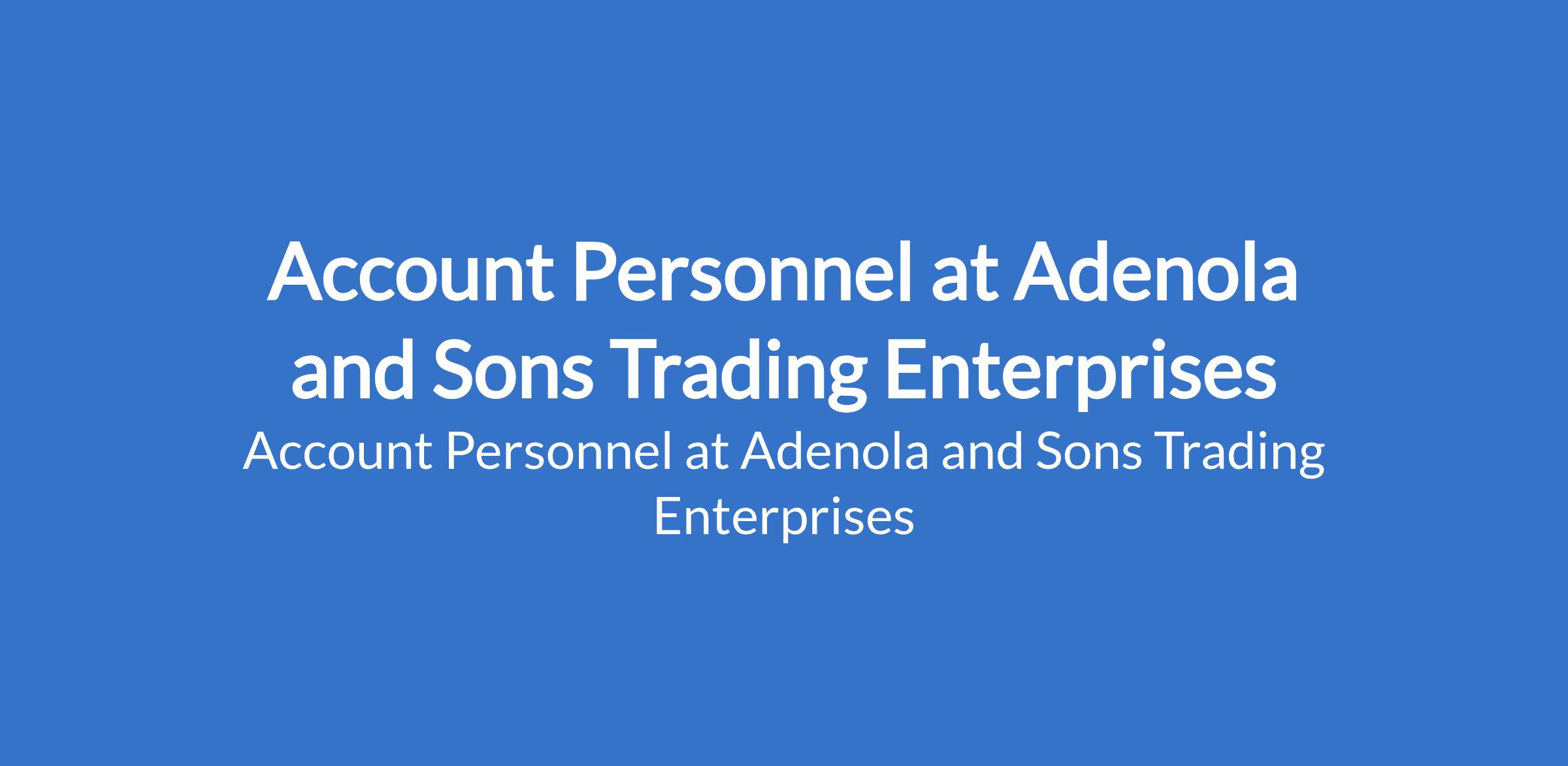 Adenola and Sons Trading Enterprises is recruiting to fill the position of: Account Personnel. The position is located in Oluyole, Ibadan - Oyo State. Salary: N100,000 / month. Interested candidates should possess relevant qualifications and candidates must reside along Oluyole axis and environs.