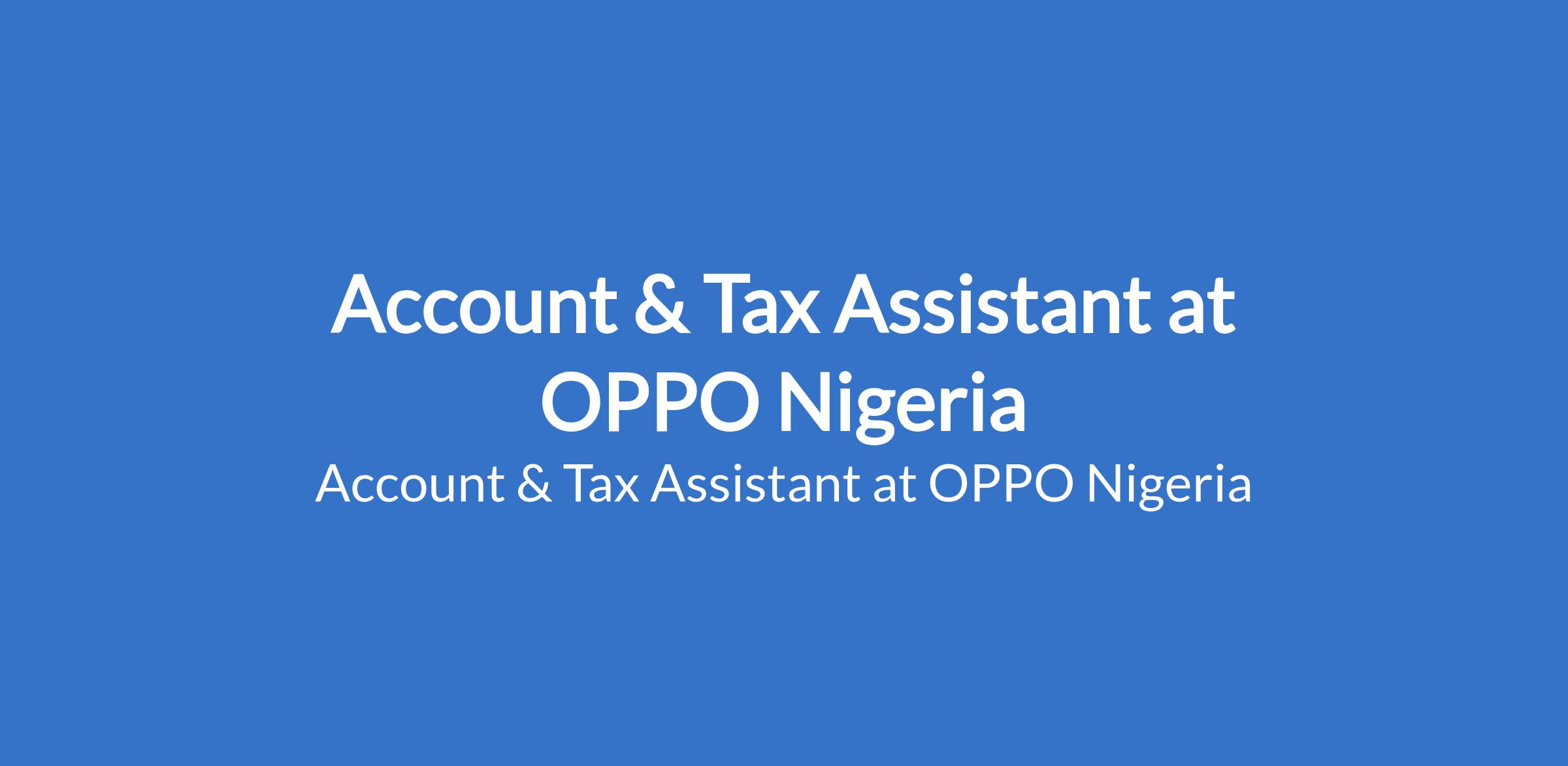 OPPO Nigeria is recruiting to fill the position of: Account & Tax Assistant. The position is located in Lagos State. Salary: N150,000 per month. Interested candidates should possess an HND / B.Sc. in Accounting, Finance, or related fields with 13 years of experience in tax and accounting.