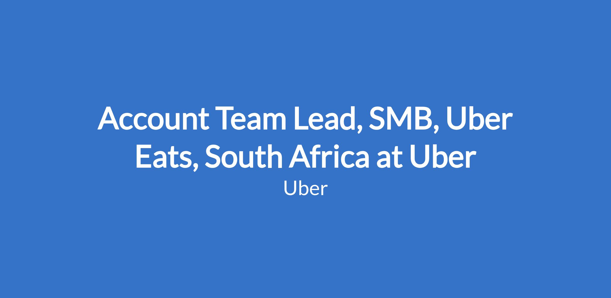 Account Team Lead, SMB, Uber Eats, South Africa at Uber