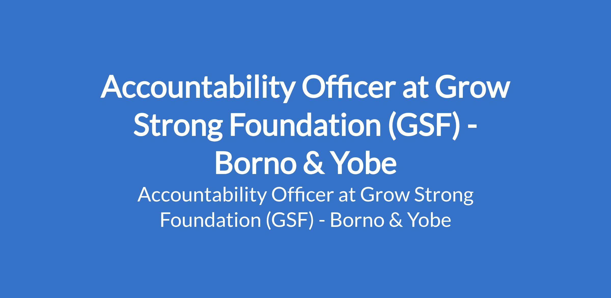 Grow Strong Foundation (GSF) is recruiting to fill the position of: Accountability Officer. The position is located in Borno and Yobe States. Interested candidates should possess relevant qualifications.