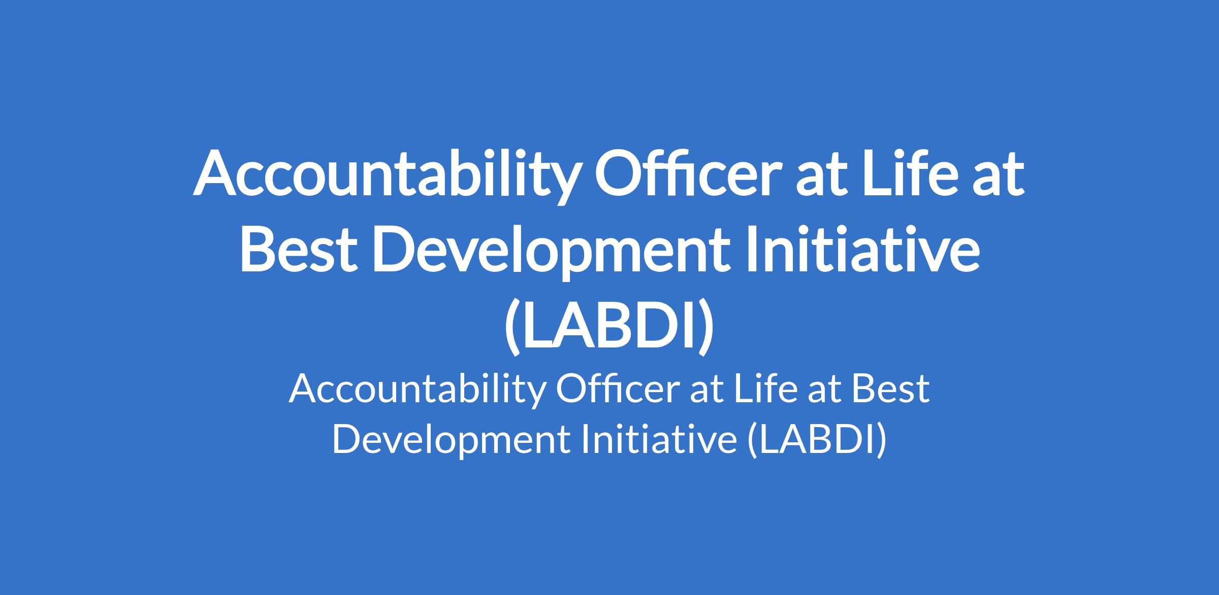 Life at Best Development Initiative (LABDI) is recruiting to fill the position of: Accountability Officer. The position is located in Borno State. Interested candidates should possess a BA Degree in an area of Social development or equivalent with a minimum of 1 year MEAL/program experience.