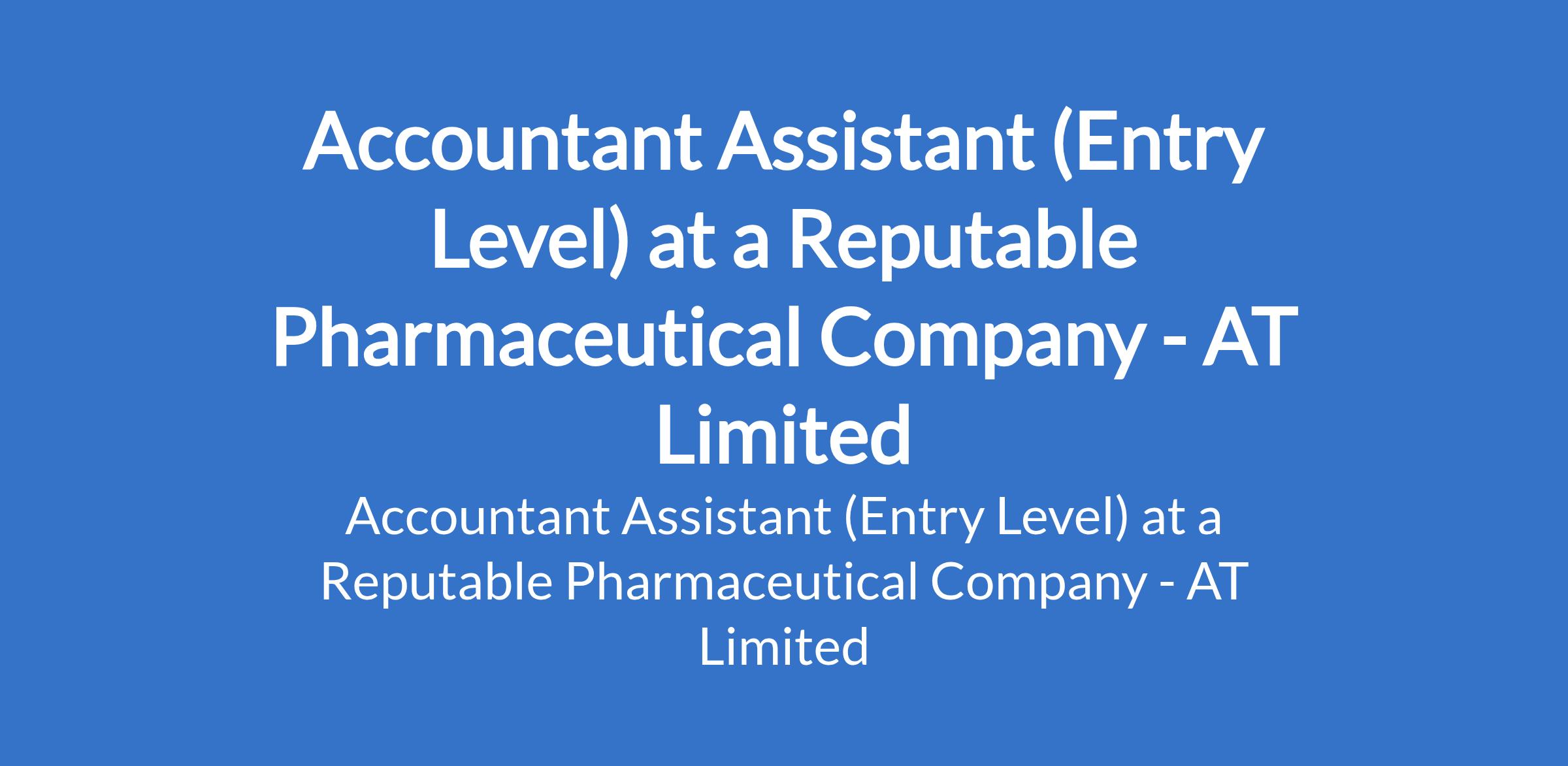 AT Limited - Our client, a reputable pharmaceutical company is recruiting to fill the position of: Accountant Assistant (Entry Level). The position is located in Ogudu, Lagos State. Salary: N150,000 / month. Interested candidates should possess a Bachelors Degree or HND in Accounting, Finance, ora related field with 02 years experience (NYSC or internship experience acceptable).
