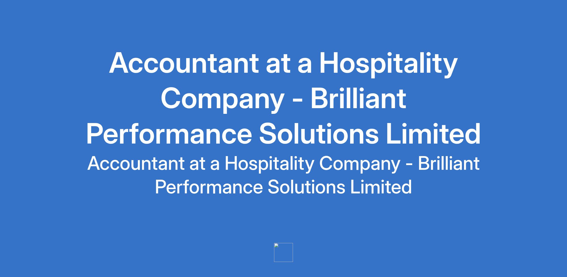 Brilliant Performance Solutions Limited - Our client is a major player in the hospitality industry is recruiting to fill the position of: Accountant. The position is located in Awka, Anambra State. Interested candidates should possess an HND or BSc in Accounting with a minimum of three years experience in Accounting after NYSC.
