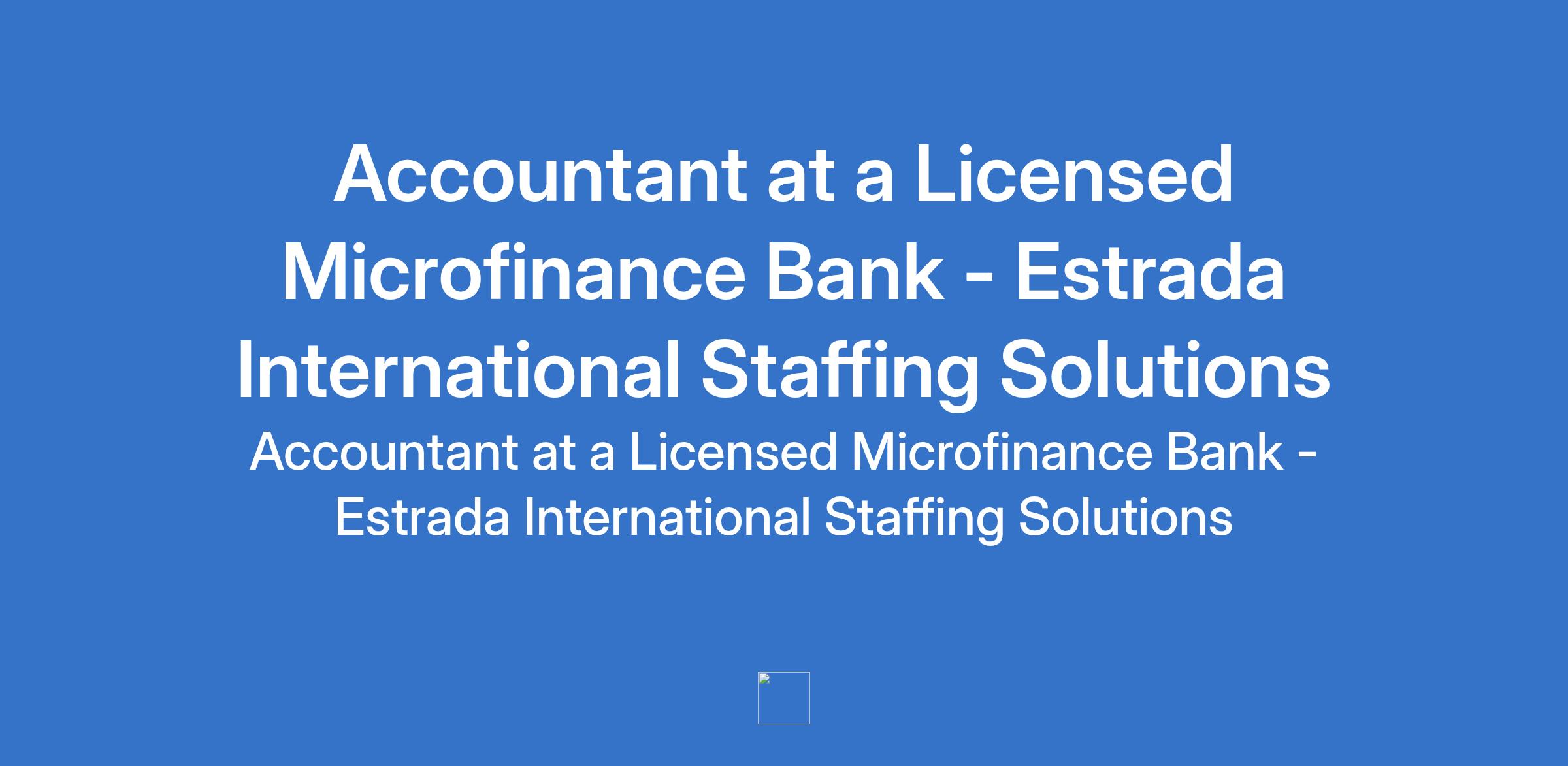 Estrada International Staffing Solutions - Our client, a licensed microfinance bank is recruiting to fill the position of: Accountant. The position is located in Ketu, Lagos State. Salary: N200,000 - N300,000 / month. Interested candidates should possess a BSc / HND in Accounting, Finance, or a related discipline with 25 years relevant accounting experience in a microfinance bank or financial institution and should be ICAN (ACA) certified or newly chartered.