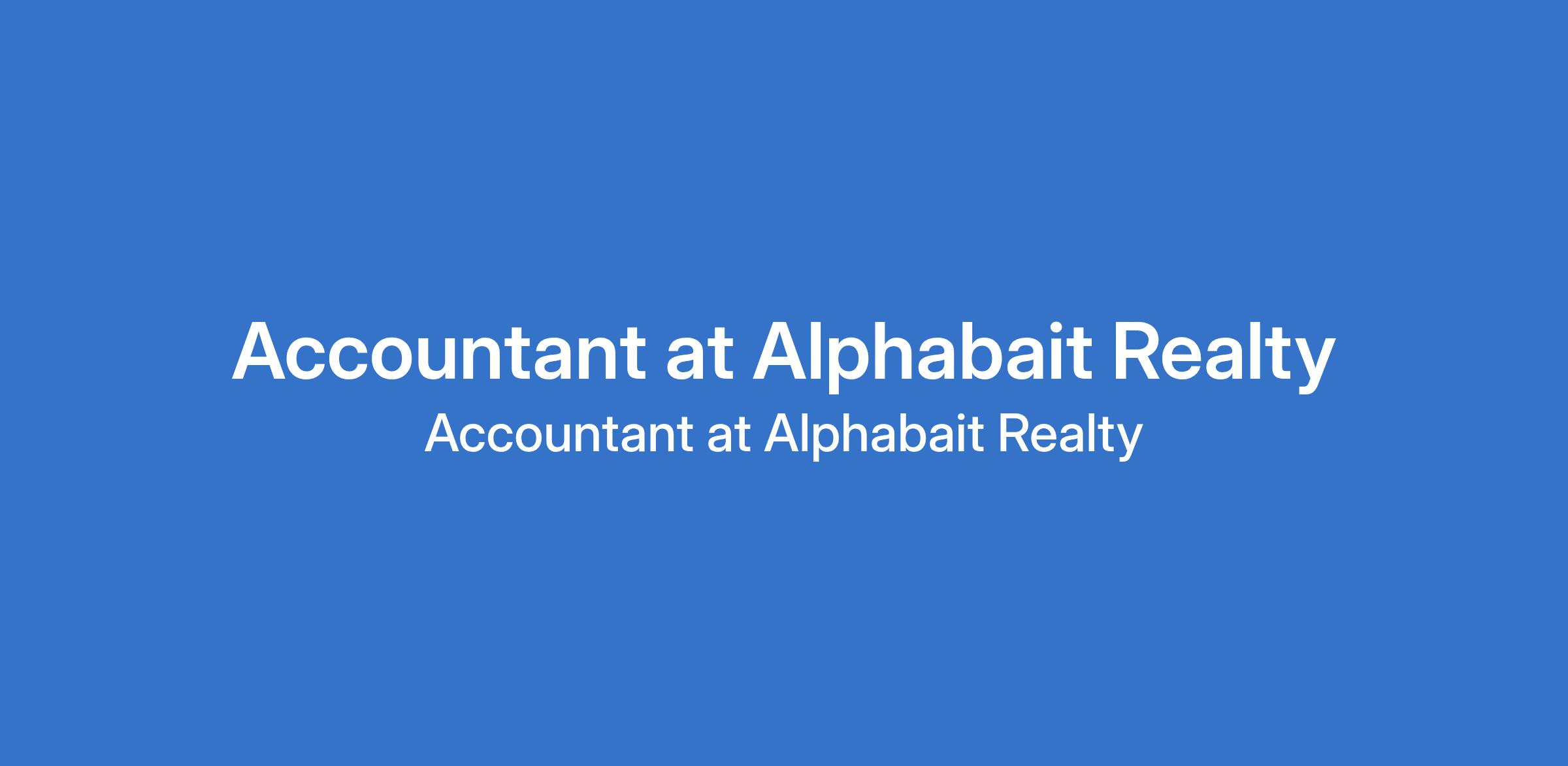 Alphabait Realty is recruiting to fill the position of: Accountant. The position is located in Abuja. Salary: N250,000 - N300,000 Monthly. Interested candidates should possess a B.Sc Degree / HND in Accounting or Finance, ICAN or ICAN in View with 2+ years of experience in accounts payable.